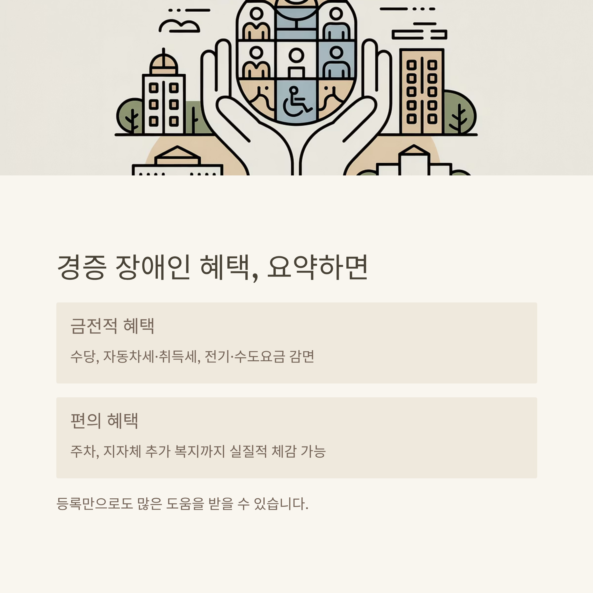 경증 장애인 혜택 총정리 – 기준, 수당, 자동차·주차·전기세 등 실사용 경험과 꿀팁