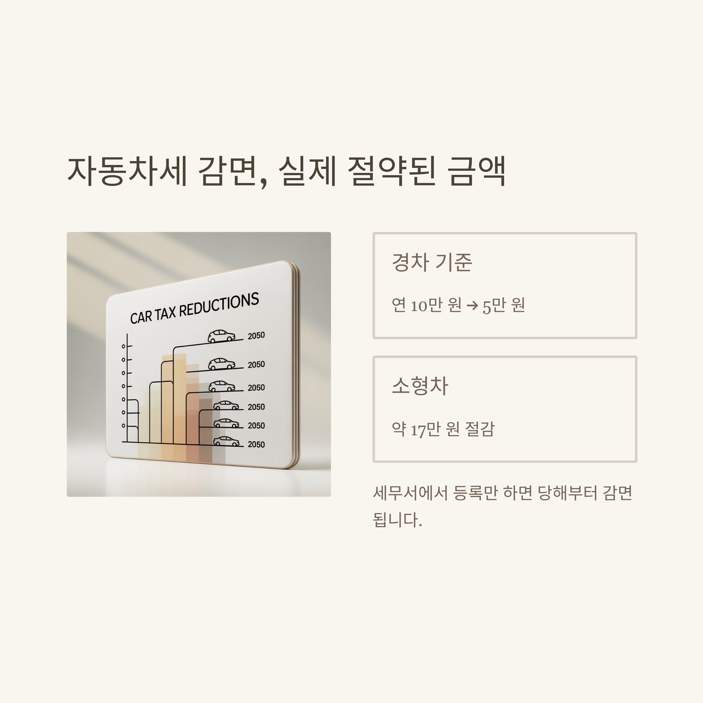| 경차(1,000cc 이하) | 약 100,000원 | 50,000원(50% 감면) |
