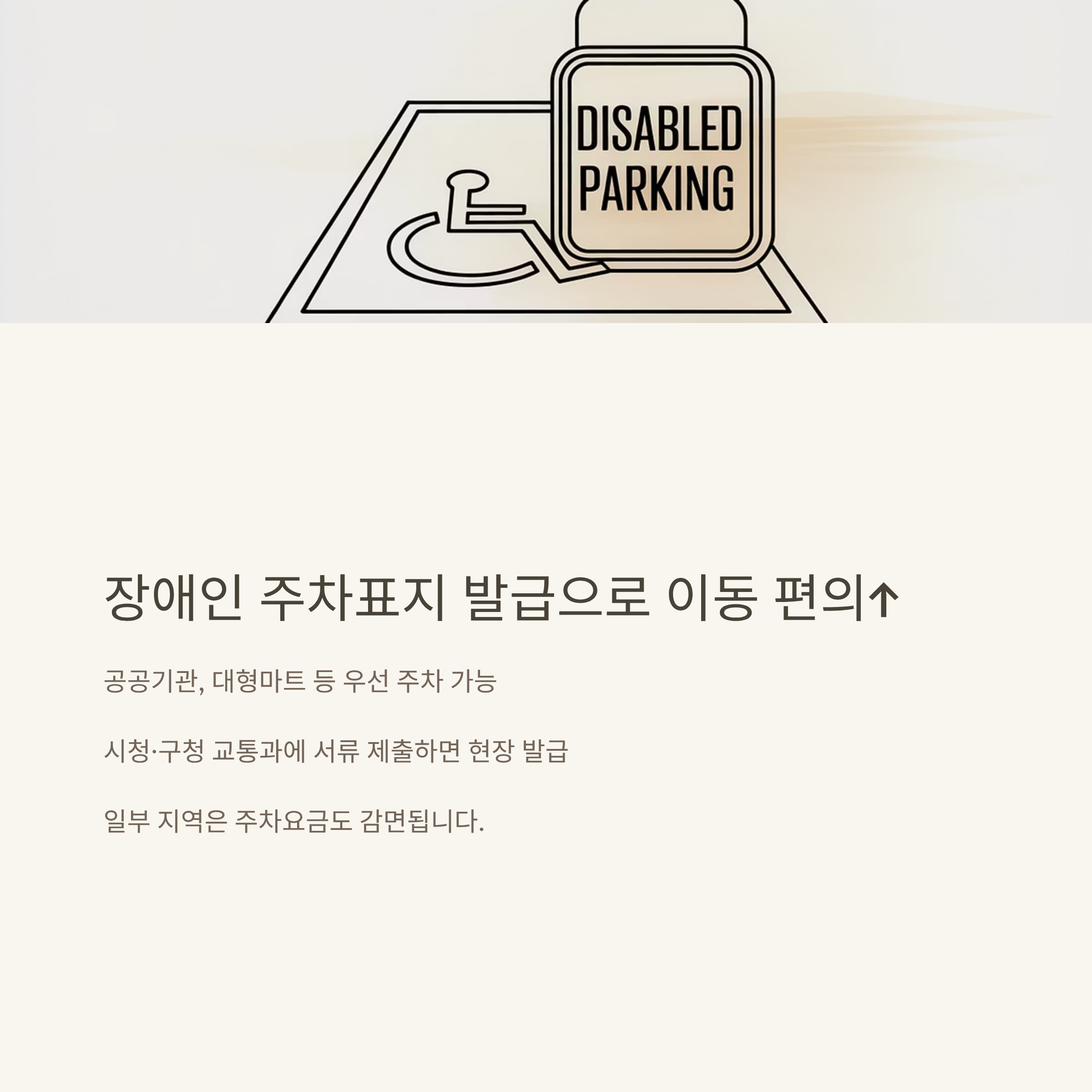 | 장애인 주차표지 | 우선 주차, 공공기관·관공서 특별구역 사용 | 이동·주차 편의성 향상 |