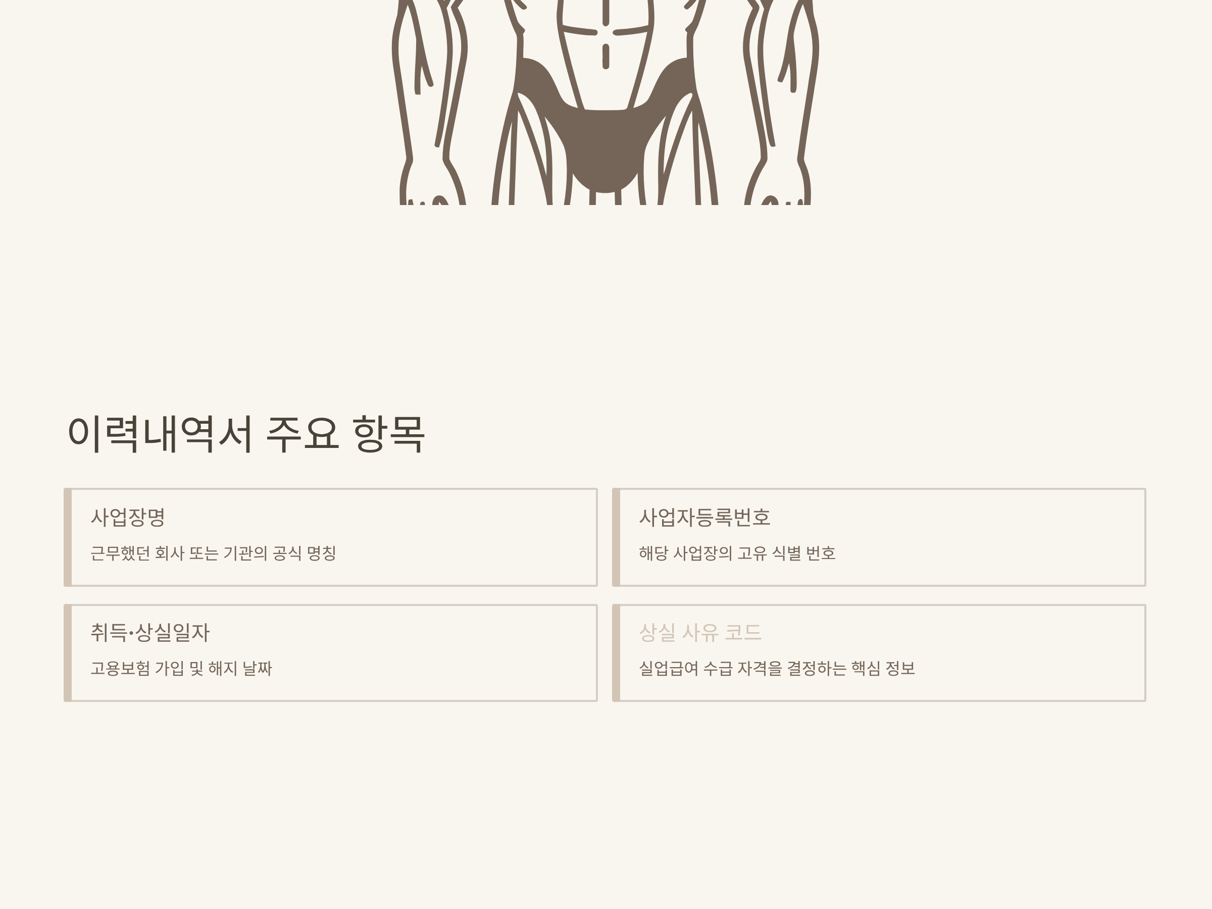 자격이력내역서에는 사업장명, 사업자등록번호, 취득일자, 상실일자, 상실 사유 코드 등이 포함됩니다. 특히 ‘상실 사유 코드’는 실업급여 수급 여부를 결정하는 중요한 정보입니다. 예를 들어, 사유 코드 29(자발적 퇴사)는 실업급여 제한 사유에 해당합니다.