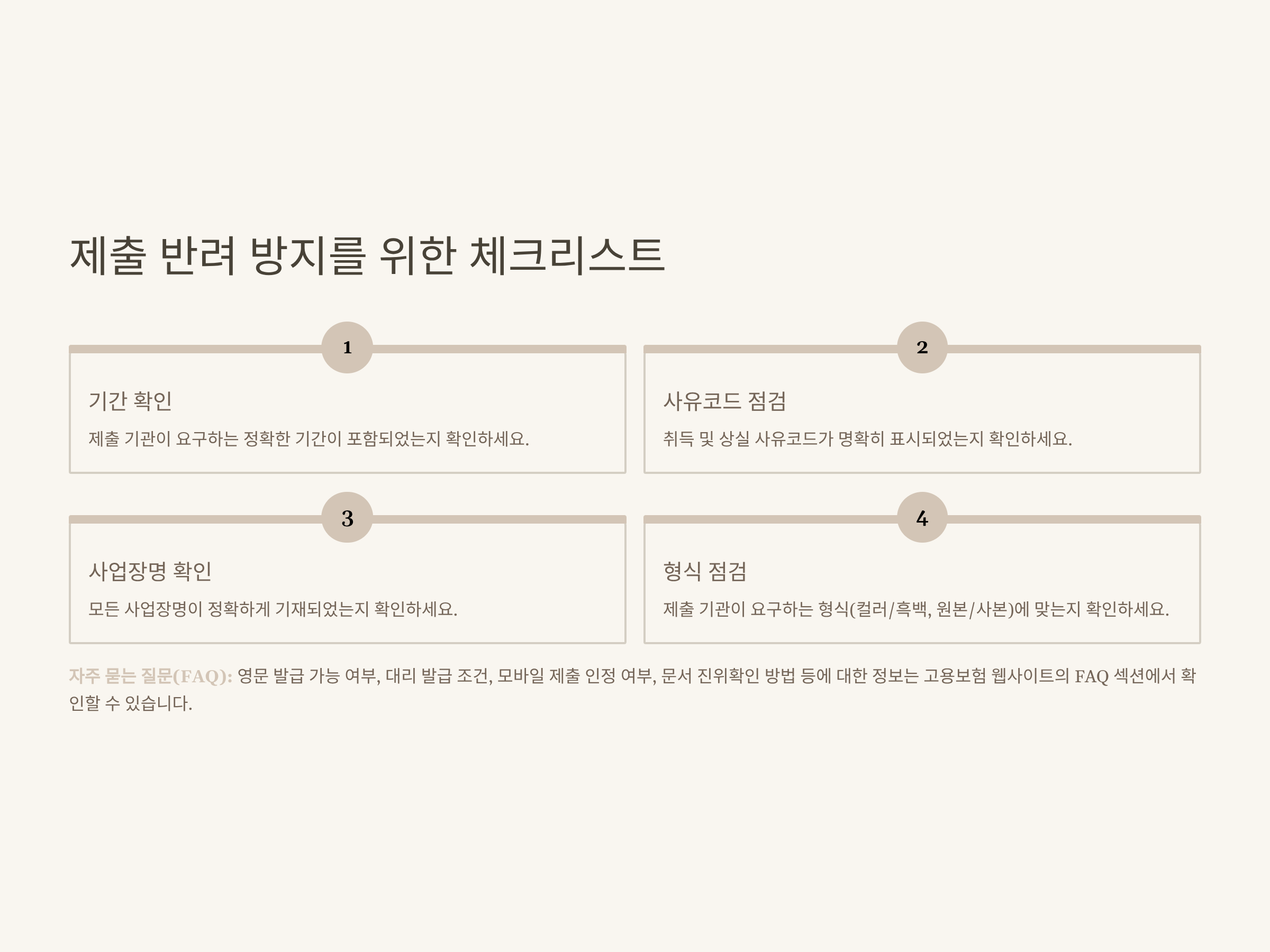 제출 반려를 막는 점검표(기간·사유코드·사업장명)