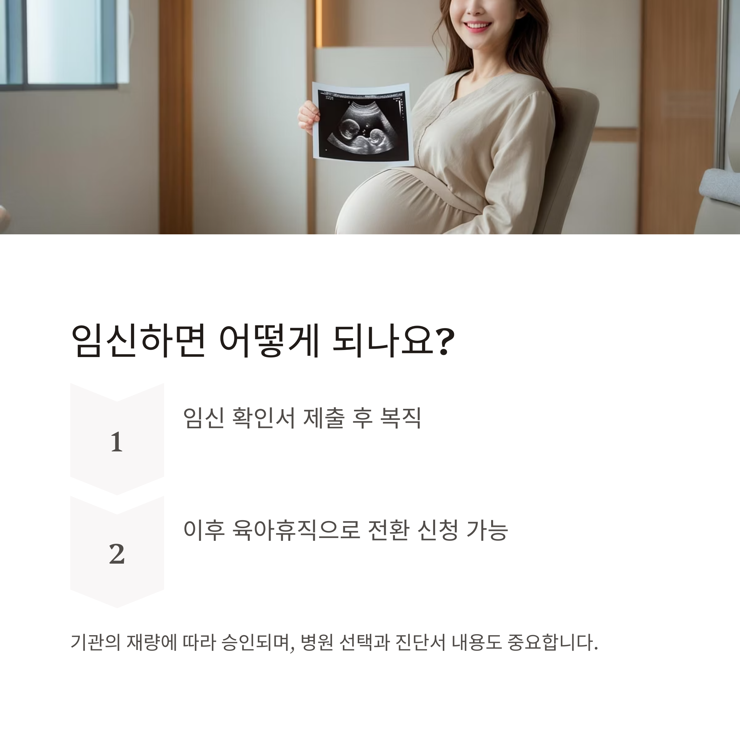 | 복직 조건 | 임신 시 확인서 제출 후 복직 또는 육아휴직 전환 |
