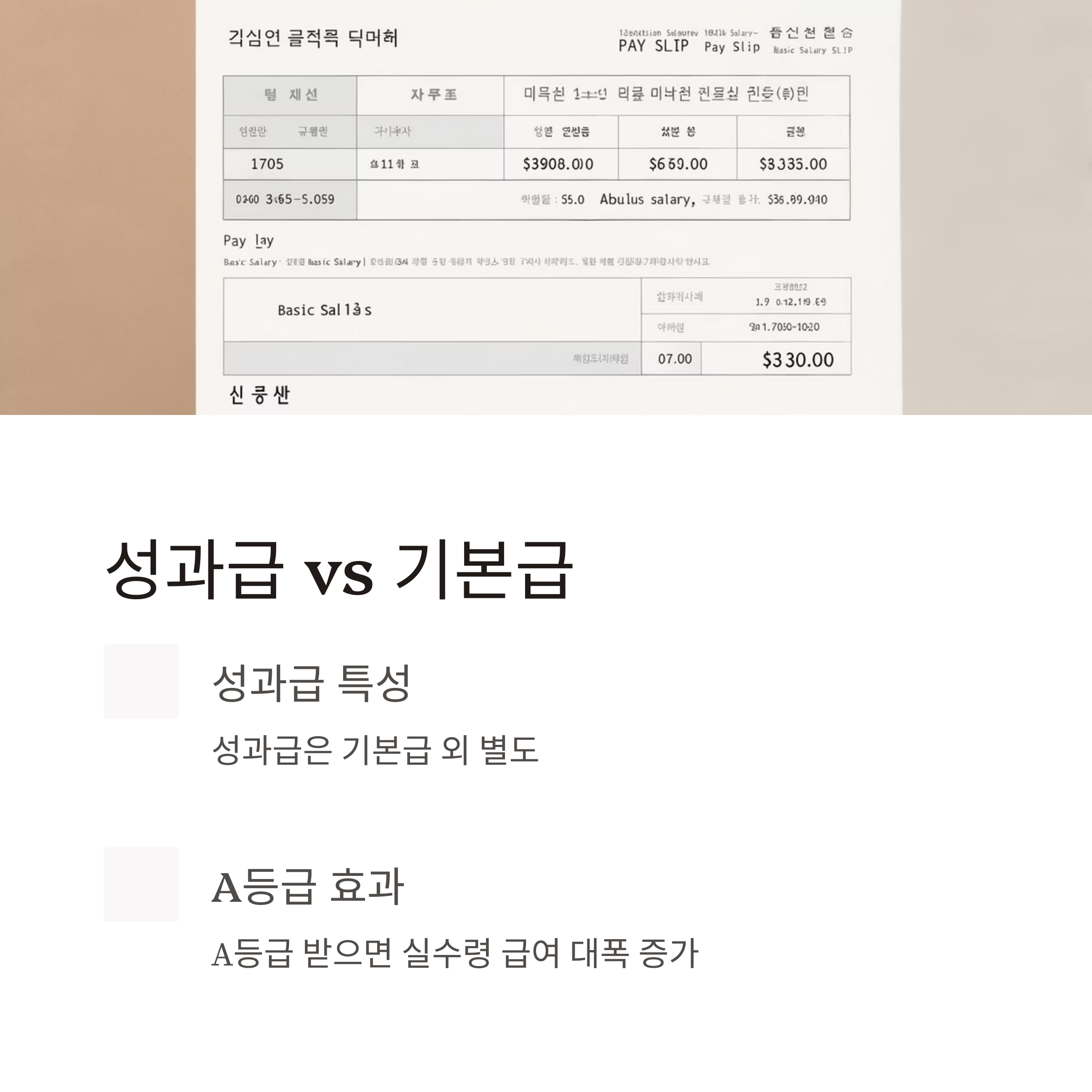 성과급은 기본급과 별개로 지급되지만, 결과적으로 연봉 구성에 큰 비중을 차지합니다. 저도 A등급을 받을 때 기본급이 낮아서 스트레스였던 동료가 “성과급 덕에 보상 균형을 맞출 수 있었다”고 말하더군요.