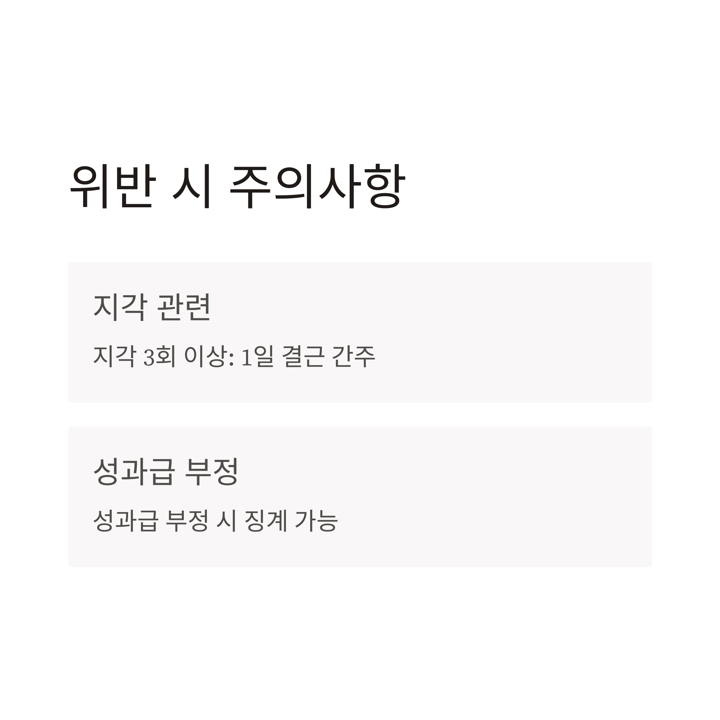 | 위반 리스크 | 보수 누락 및 징계 가능 | 지각·결근 문서 기록 필수 |