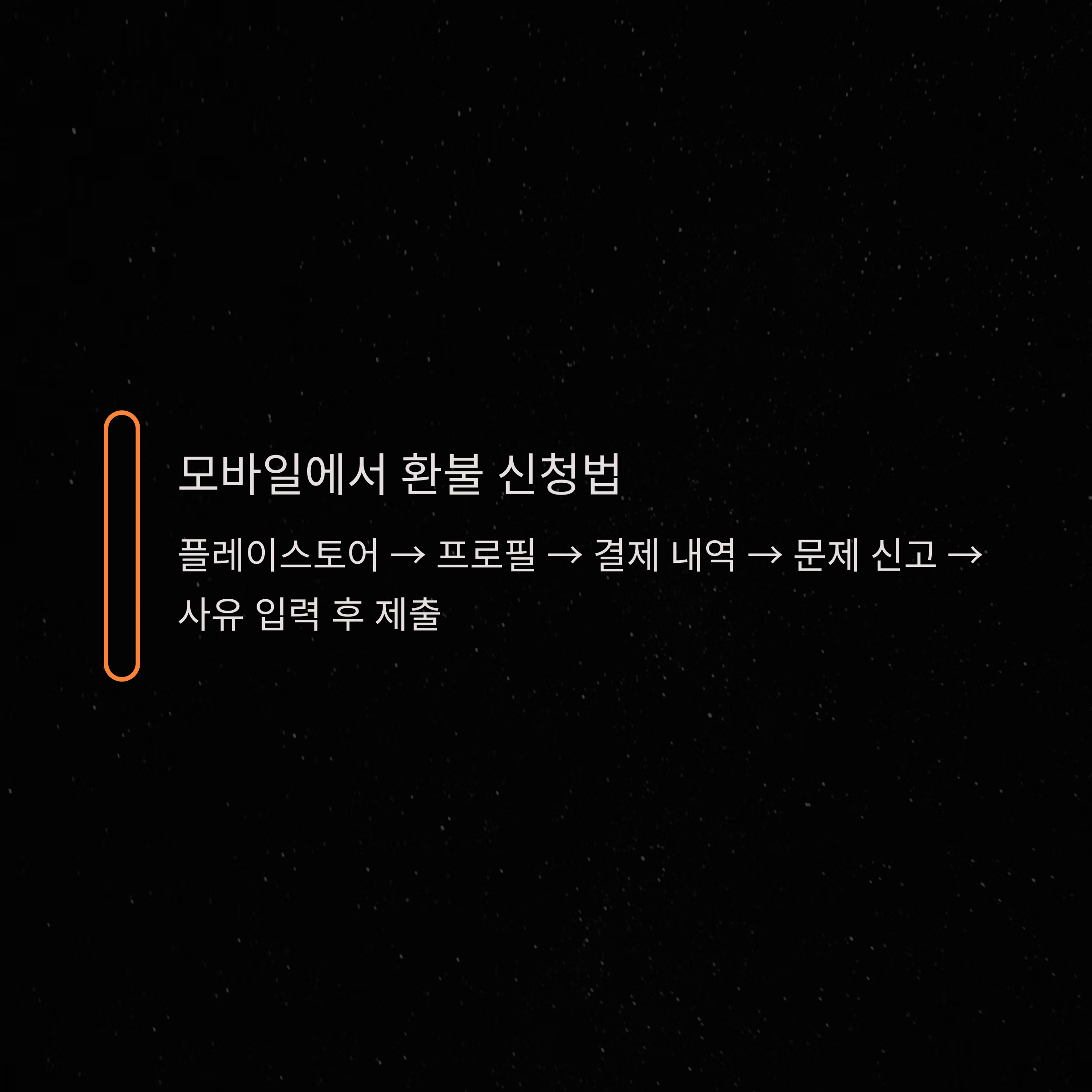 | 신청 방법 | 플레이스토어 > 결제 내역 > 문제 신고 또는 고객센터 문의 |