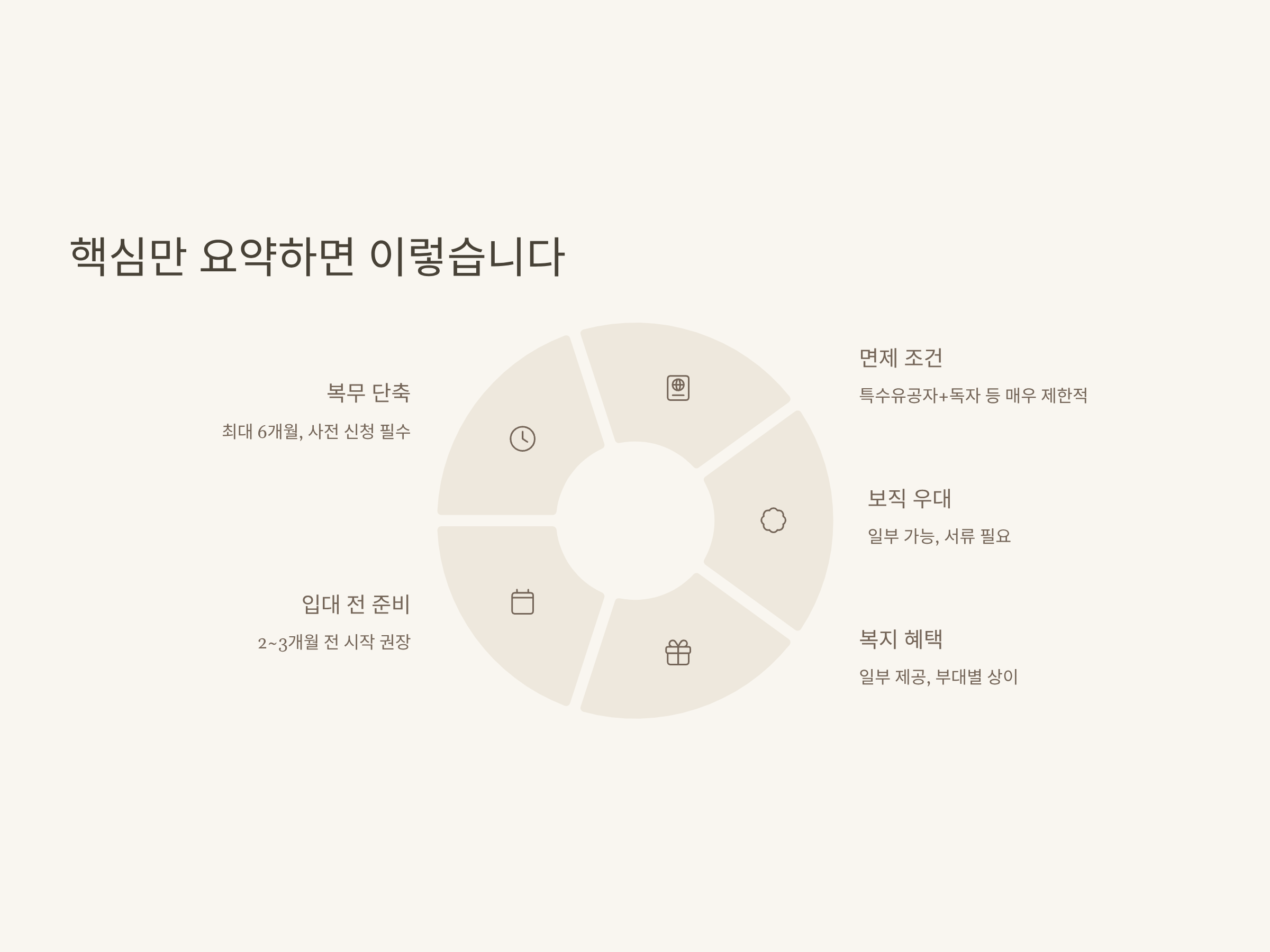 | 보직 우대 | 행정·복지 등 일부 분야 우선배치, 부대별 인사심사 |