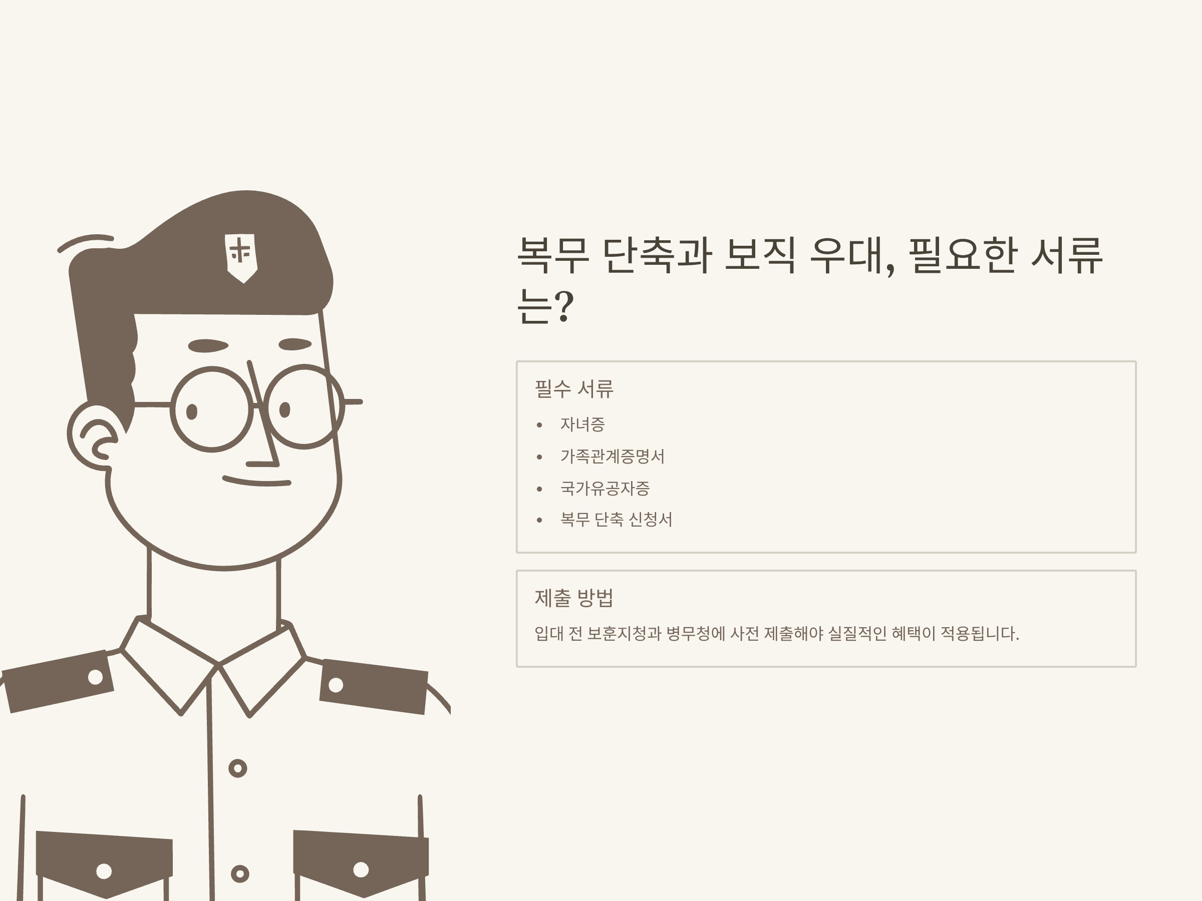 | 준비서류 | 자녀증, 가족관계증명서, 복무 단축/면제 신청서 등 |
