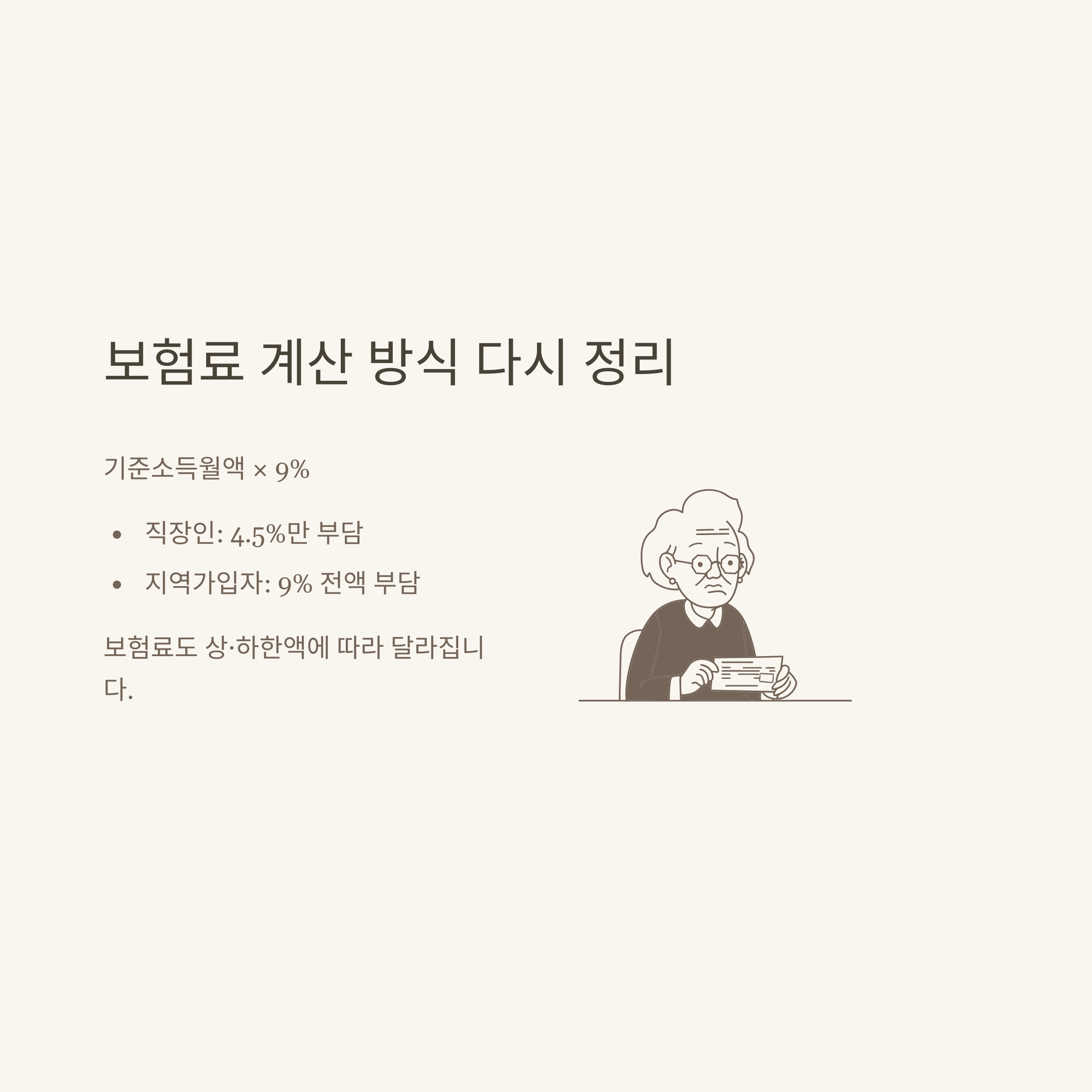 - 상·하한액 적용(최대·최소 보험료 존재)