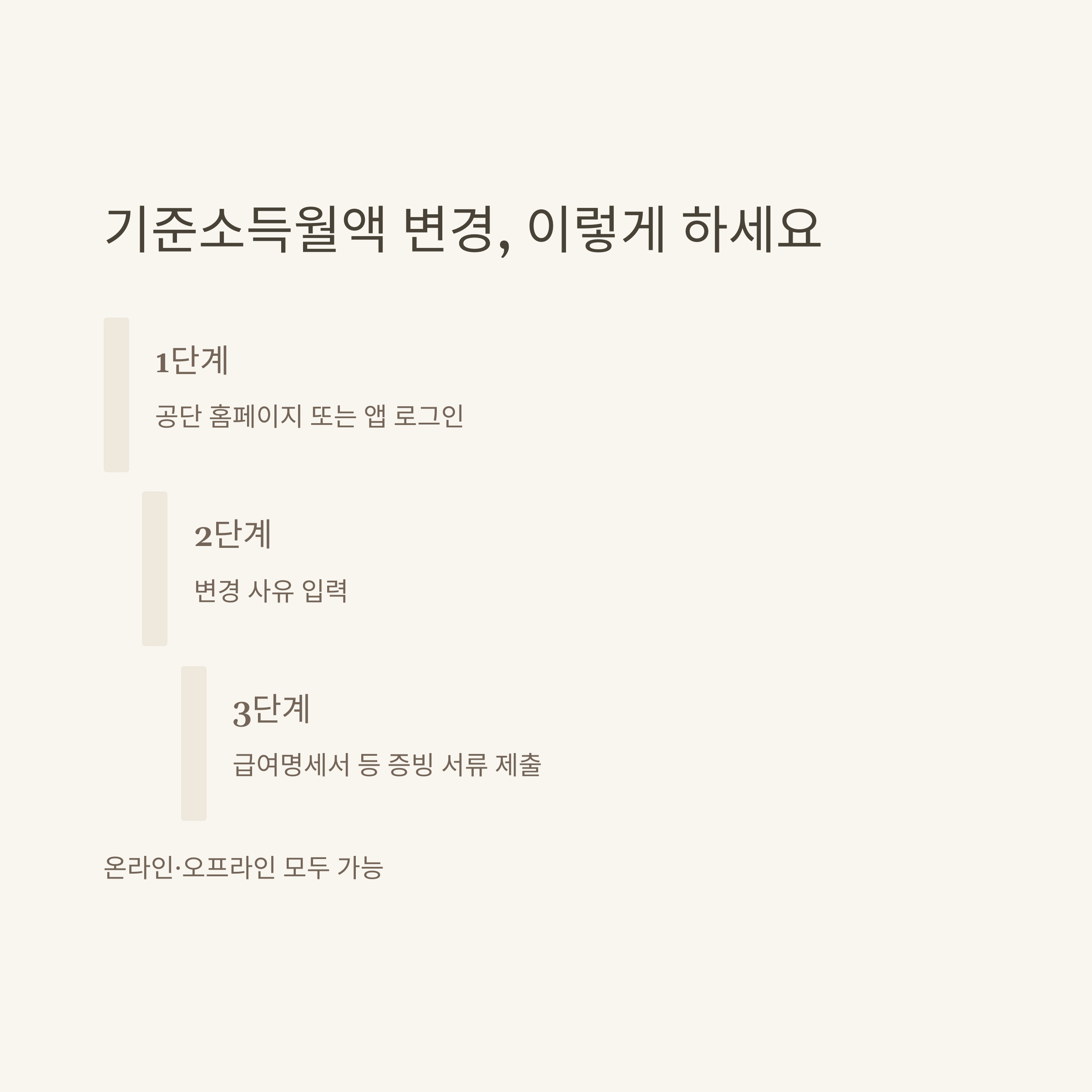 상세 절차와 필요서류는 국민연금공단 기준소득월액 변경안내에서 공식적으로 안내되고 있으니 참고하시면 놓치는 부분 없이 준비할 수 있습니다.