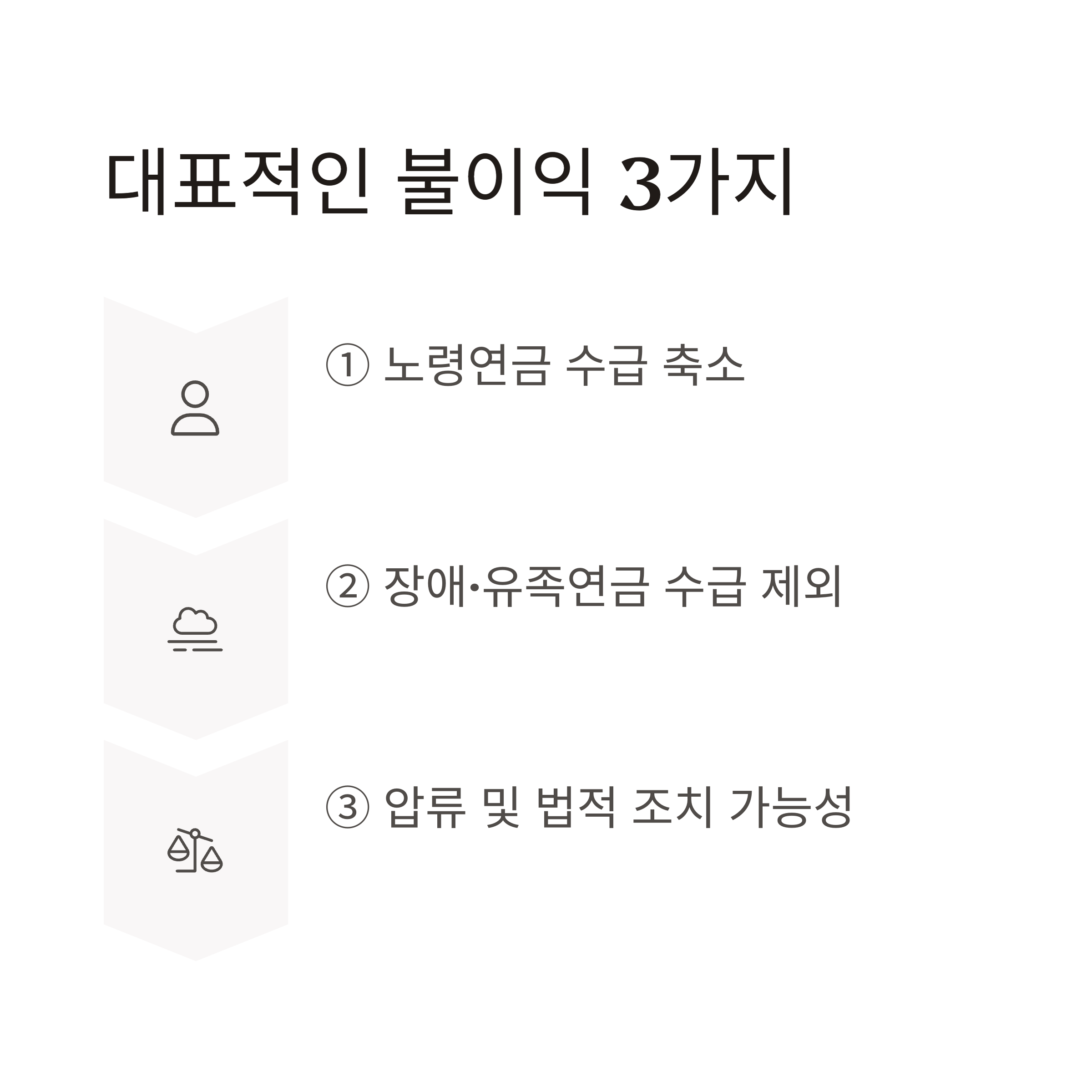 | 노령연금 | 가입기간 부족 시 수급 불가 또는 축소 |