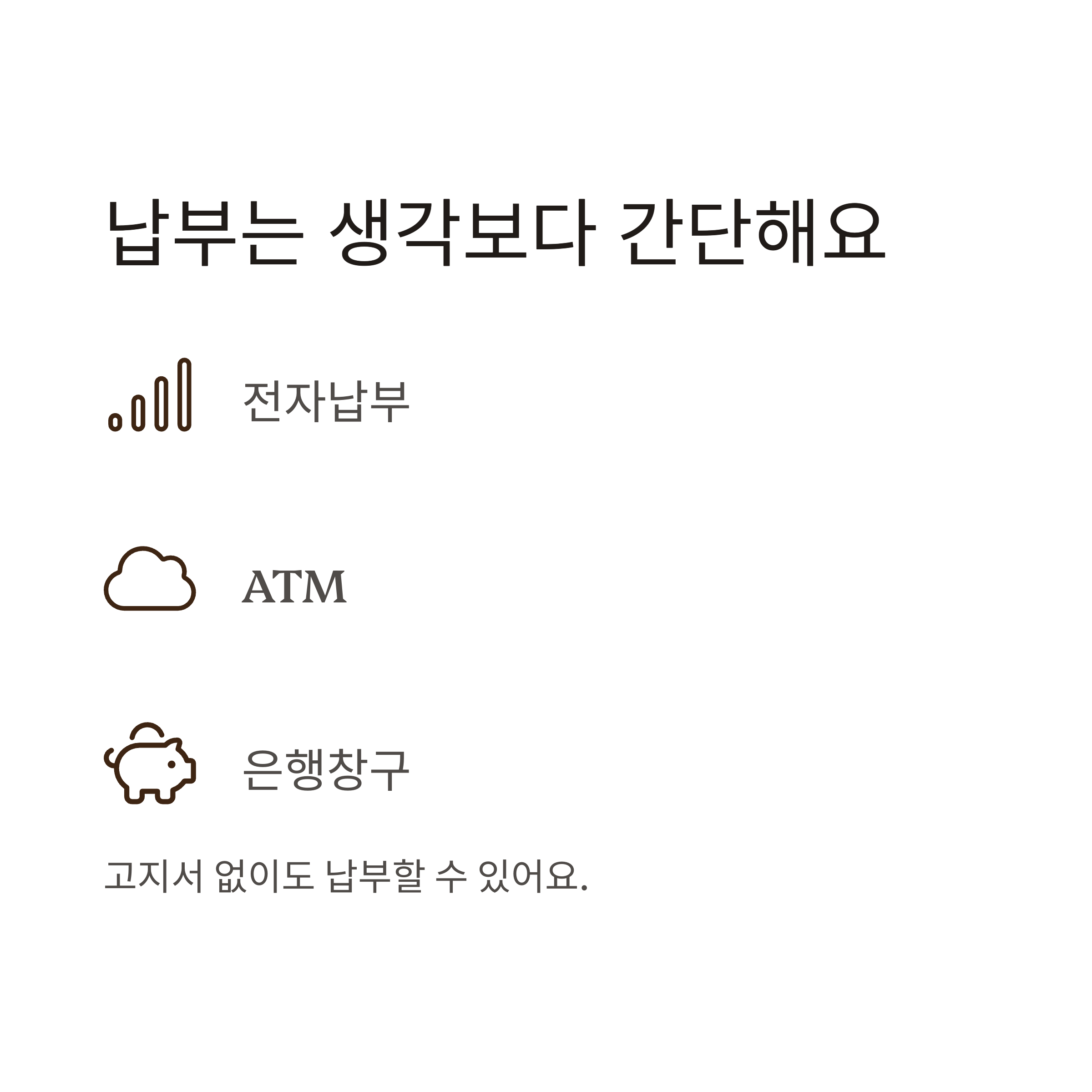 | 납부절차 | 전자납부, ATM, 은행 창구 |
