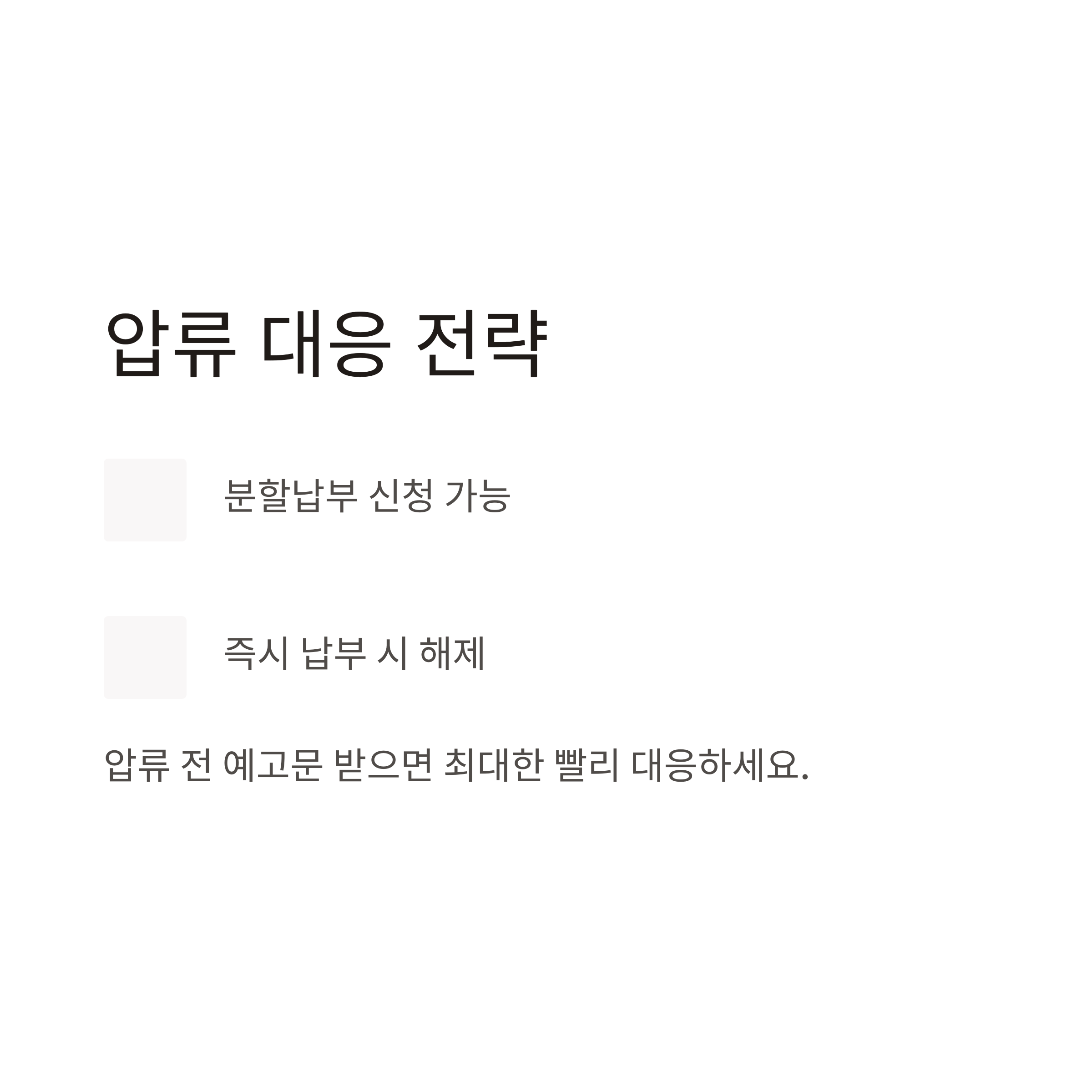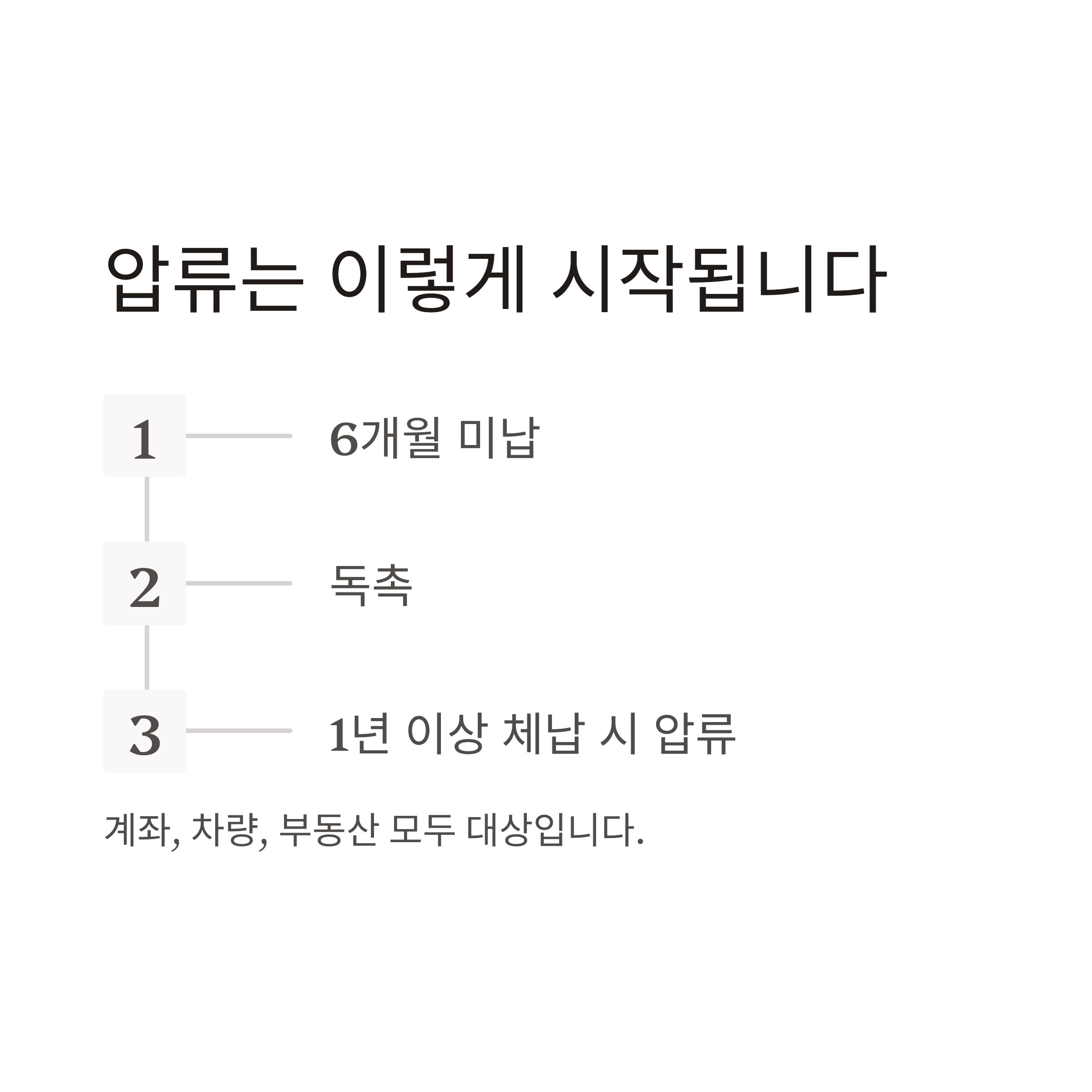 - 압류 예고 후 14일 내 납부 없으면 가압류 진행