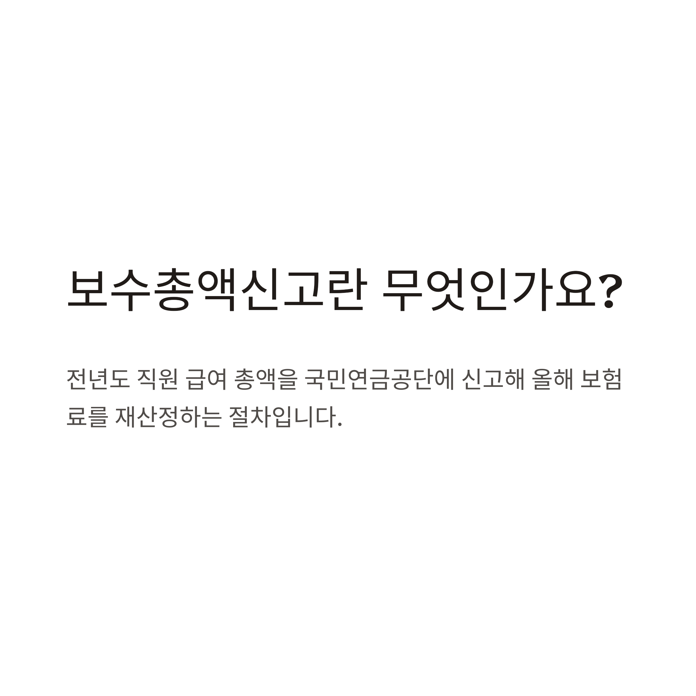 국민연금 보수총액신고란 전년도 근로자들에게 지급한 연간 보수 총액(급여 총액)을 국민연금공단에 신고하는 행위로, 이를 통해 해당 연도 국민연금 보험료를 재산정하게 됩니다. 매년 3월 초~4월 초 사이가 법정 신고 기간입니다.