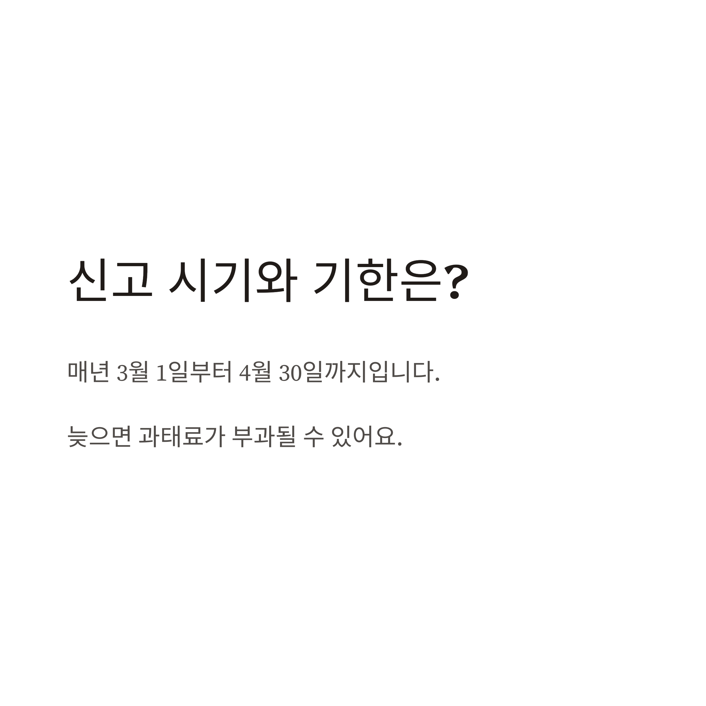 | 신고 기간 | 매년 3월 1일~4월 30일 |
