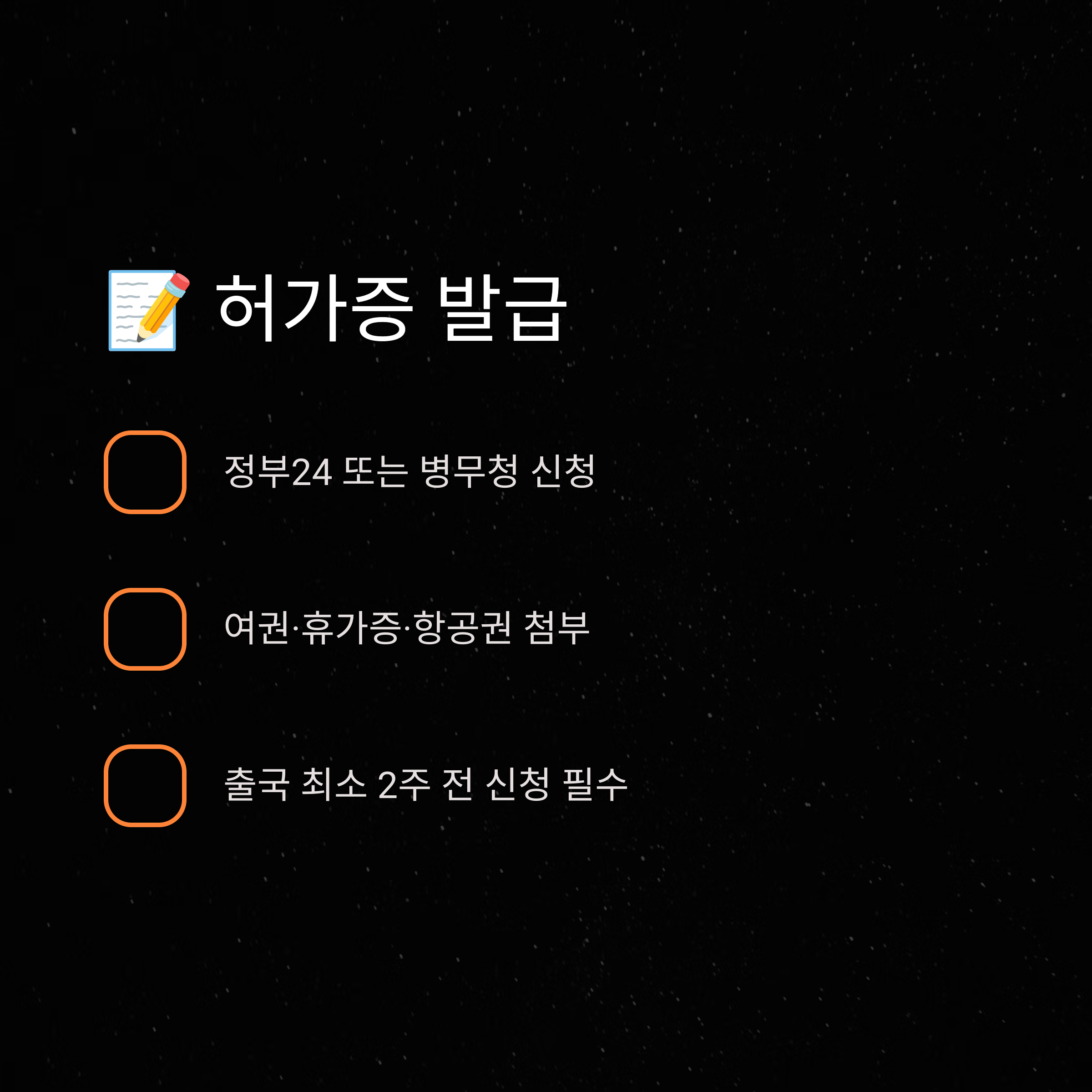 - 병무청 허가 신청: 여행 목적과 일정 상세히 작성