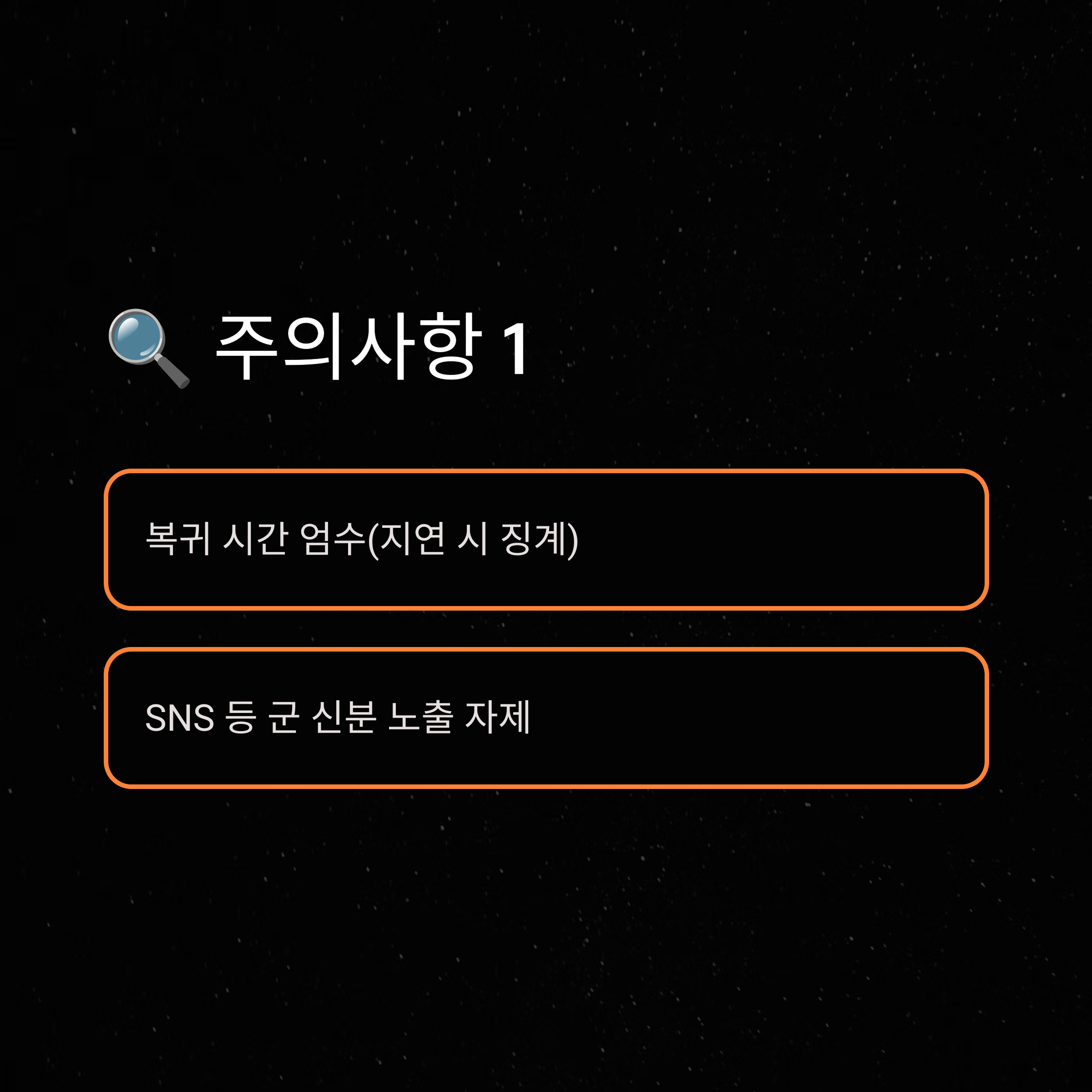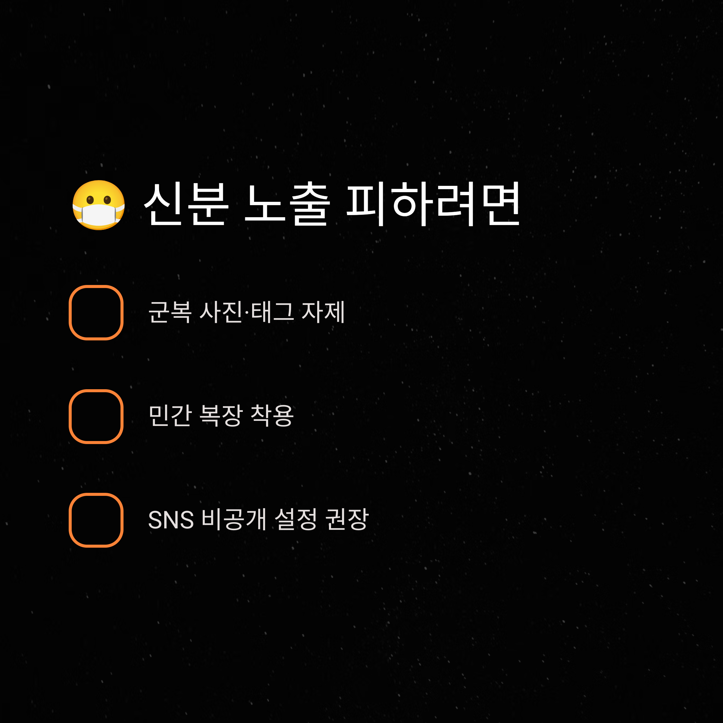 - SNS에 군복 사진, 군 관련 태그 자제