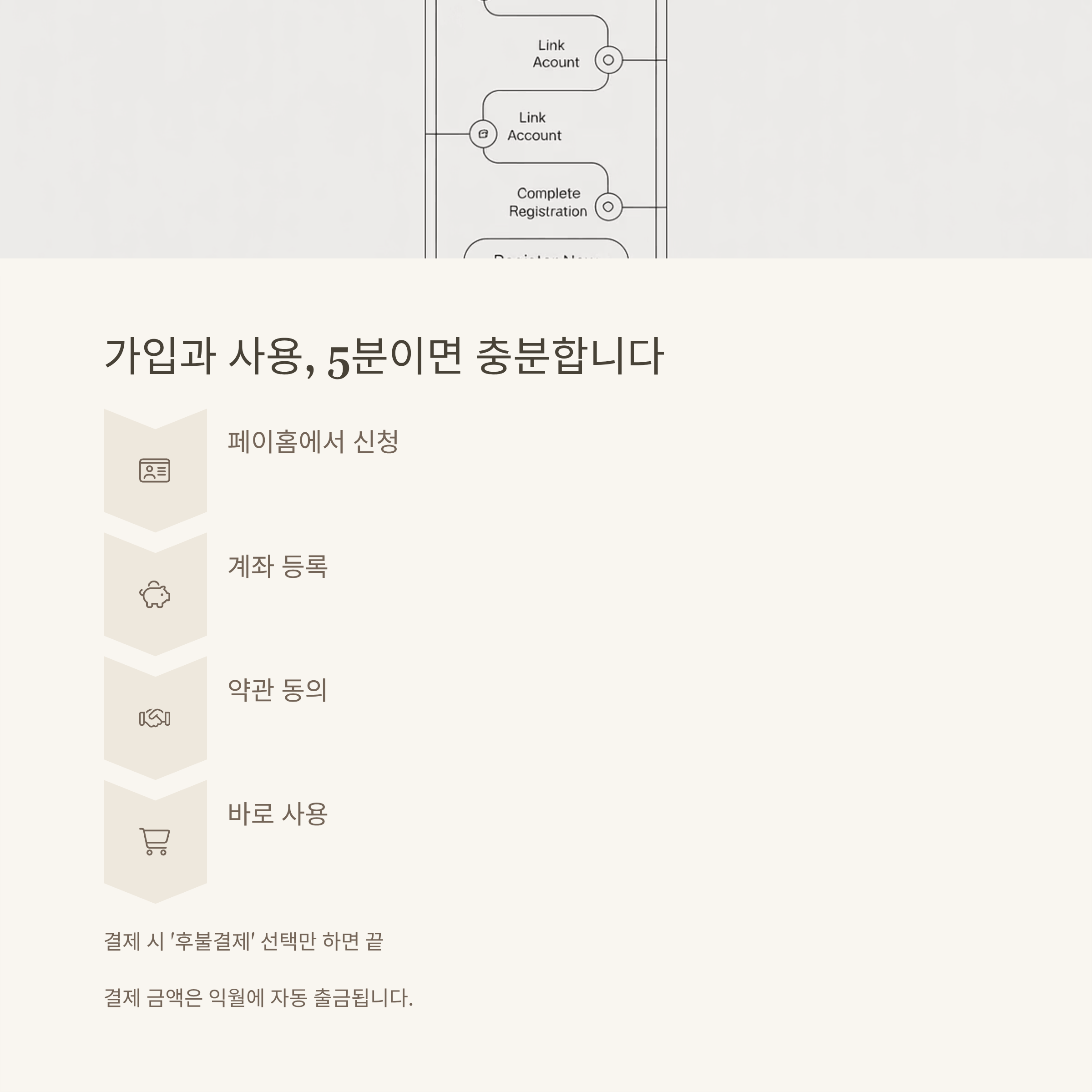 - 본인 인증 후, 계좌 등록 및 약관 동의