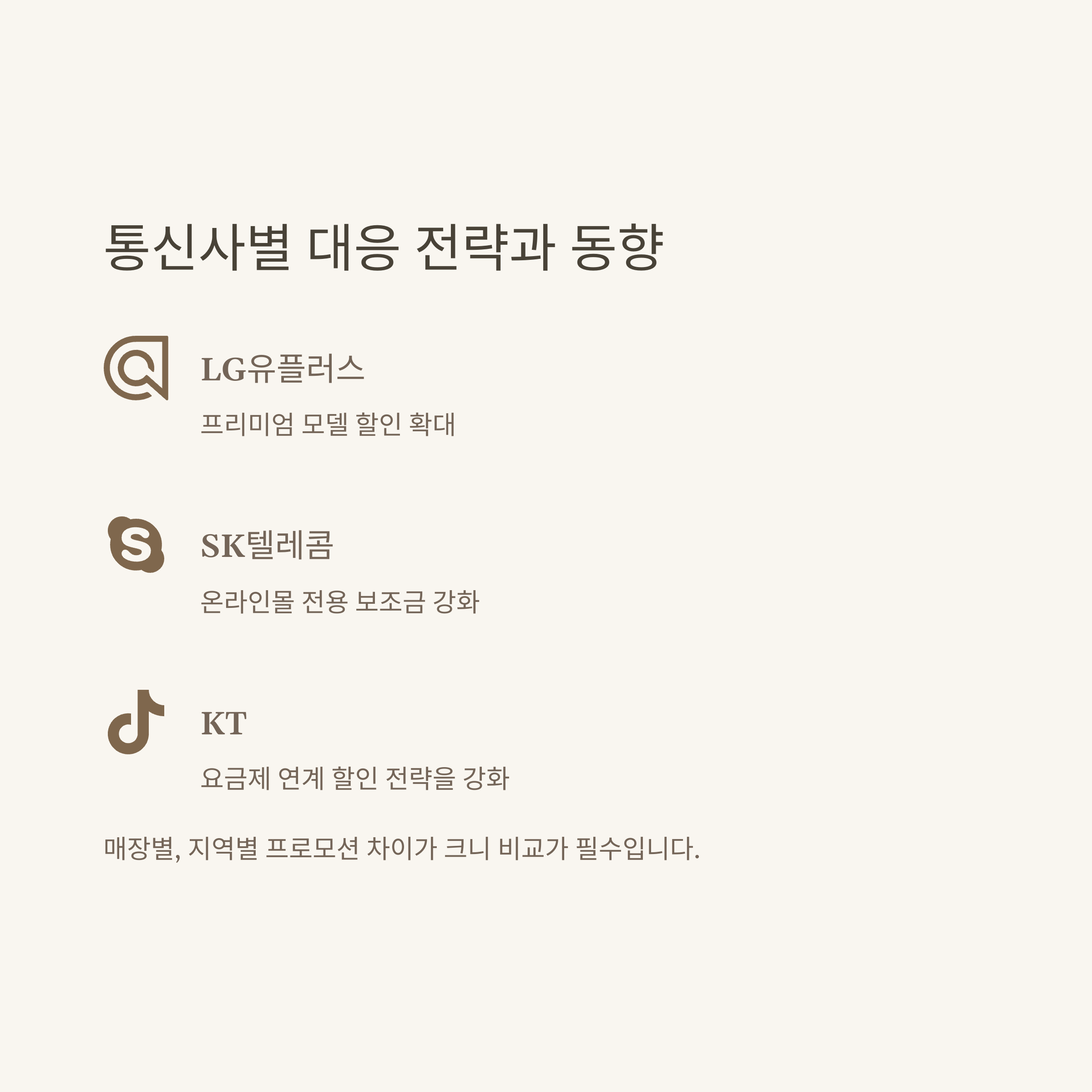 | LG, 기타 브랜드 | 출고가 유지 혹은 소폭 변동 | 보조금 확대 가능성 |