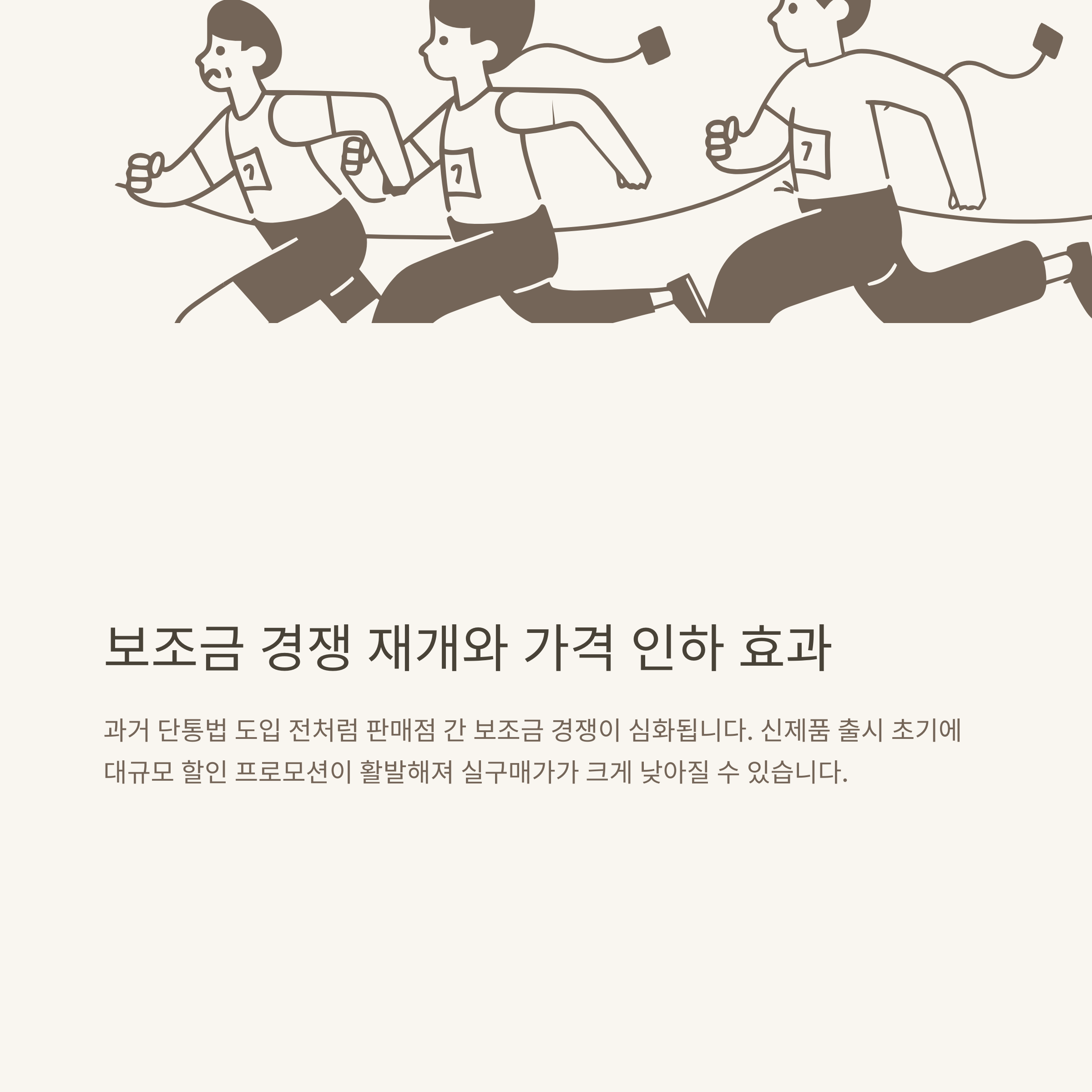 단통법 폐지는 곧 보조금 경쟁의 부활을 의미합니다. 과거 단통법 도입 이전처럼 판매점 간 보조금 경쟁이 치열해지면서 휴대폰 실구매 가격이 크게 내려갈 가능성이 높아졌어요.