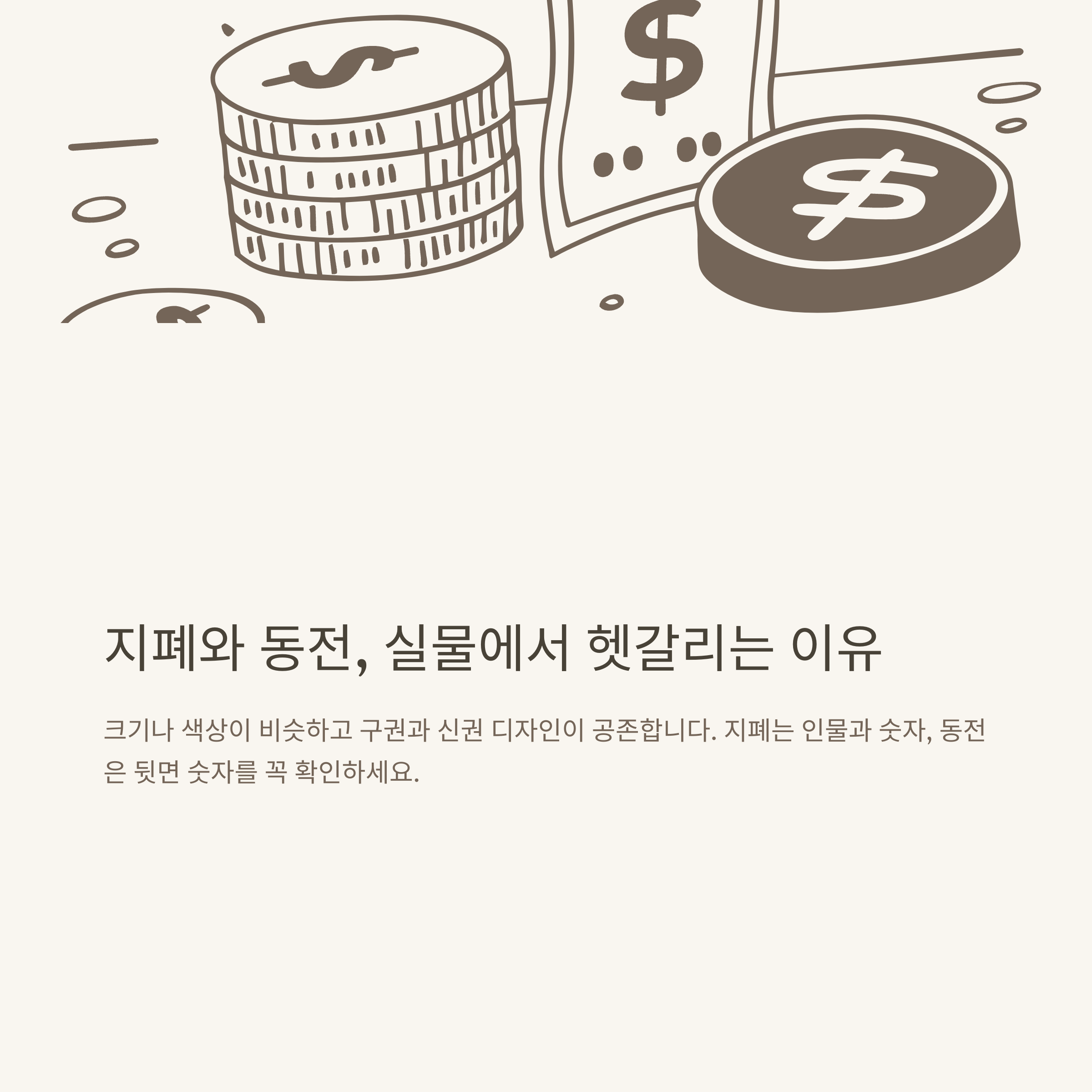 저는 미국 뉴욕 지하철에서 $1, $5 동전과 지폐를 헷갈려 한 번 잘못 계산한 적이 있었고, 캐나다에서는 $2 동전(투니)이 너무 익숙하지 않아 당황한 적도 있었습니다. 홍콩에서는 은행별로 디자인이 달라서, “이게 진짜 맞나요?”라고 점원에게 물어본 경험도 있습니다.