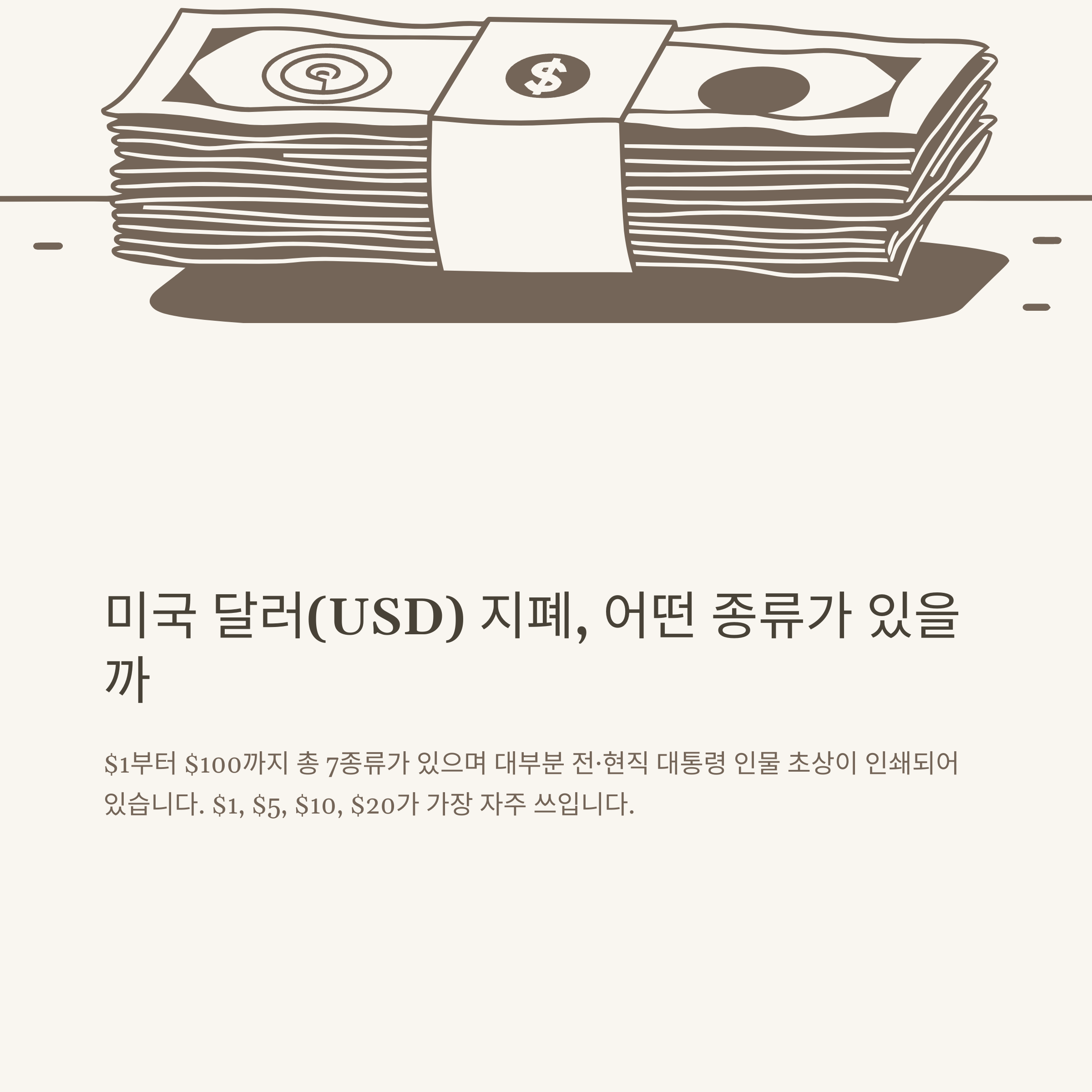 | $1 | 조지 워싱턴 | 가장 많이 쓰임, 팁용 |