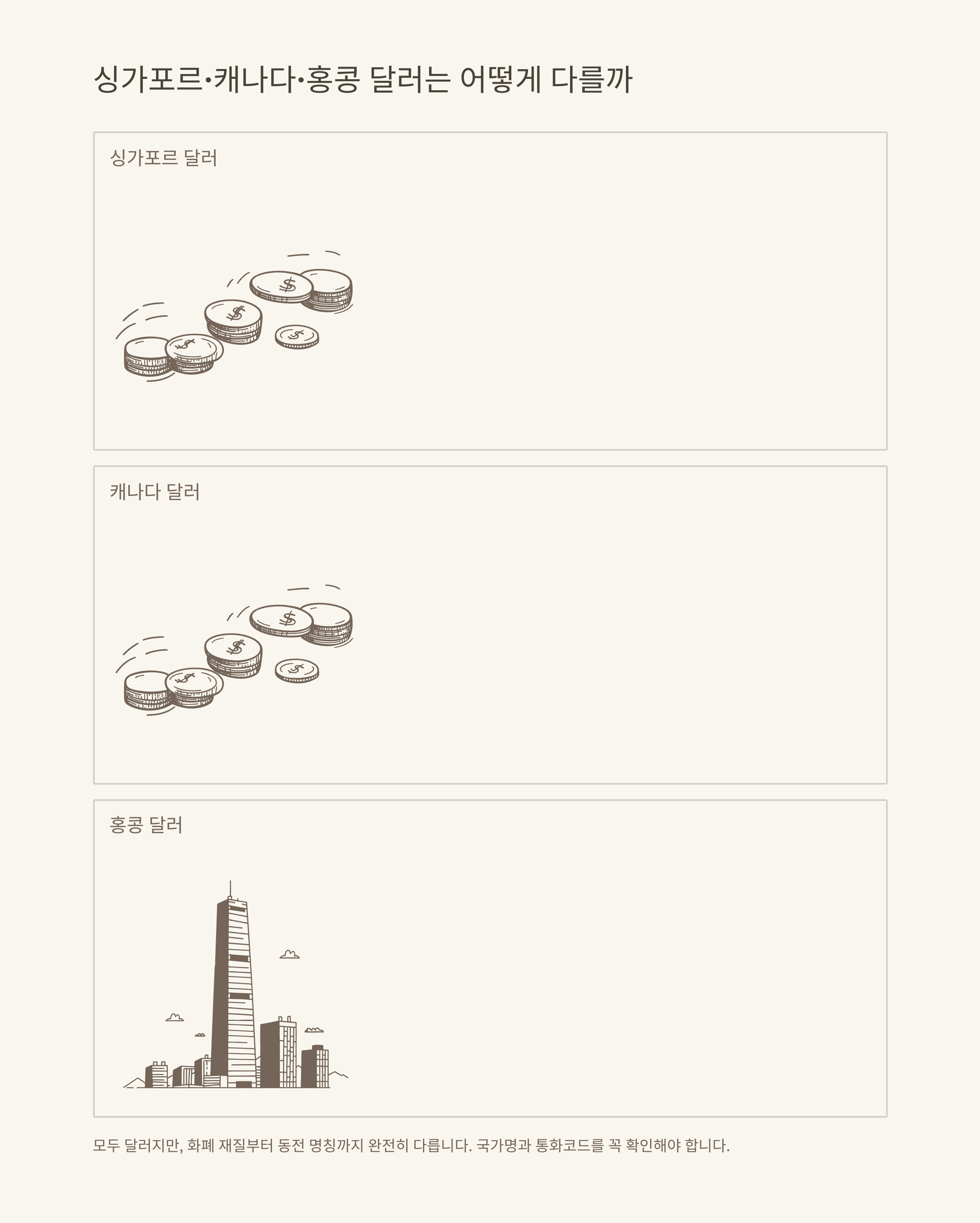 캐나다·싱가포르·홍콩 달러 종류 비교