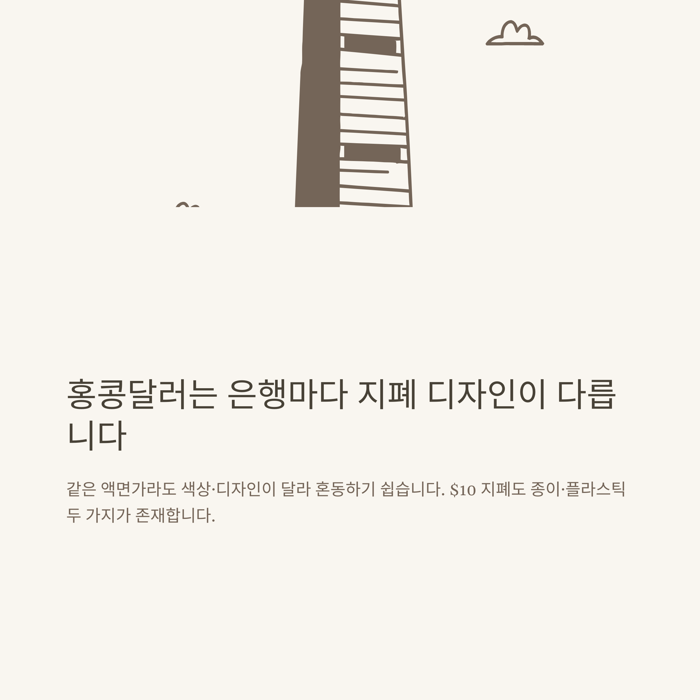 | 홍콩 | $10~$1,000/10¢~$10 | 은행별 디자인, 플라스틱 지폐 많음 | 고액권은 조심 |