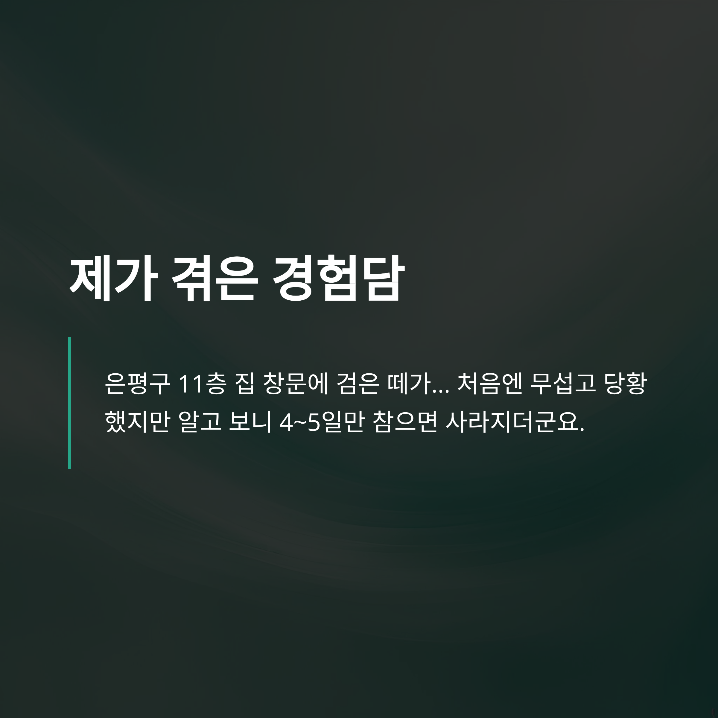작년 봄, 은평구 불광동 아파트 11층에서 살던 저는 어느 날 창밖을 봤다가 식겁했습니다. 창문 유리에 시커먼 벌레 떼가 빼곡하게 붙어 있었거든요. 처음엔 모기 떼인가 싶어서 공포감이 밀려왔죠.