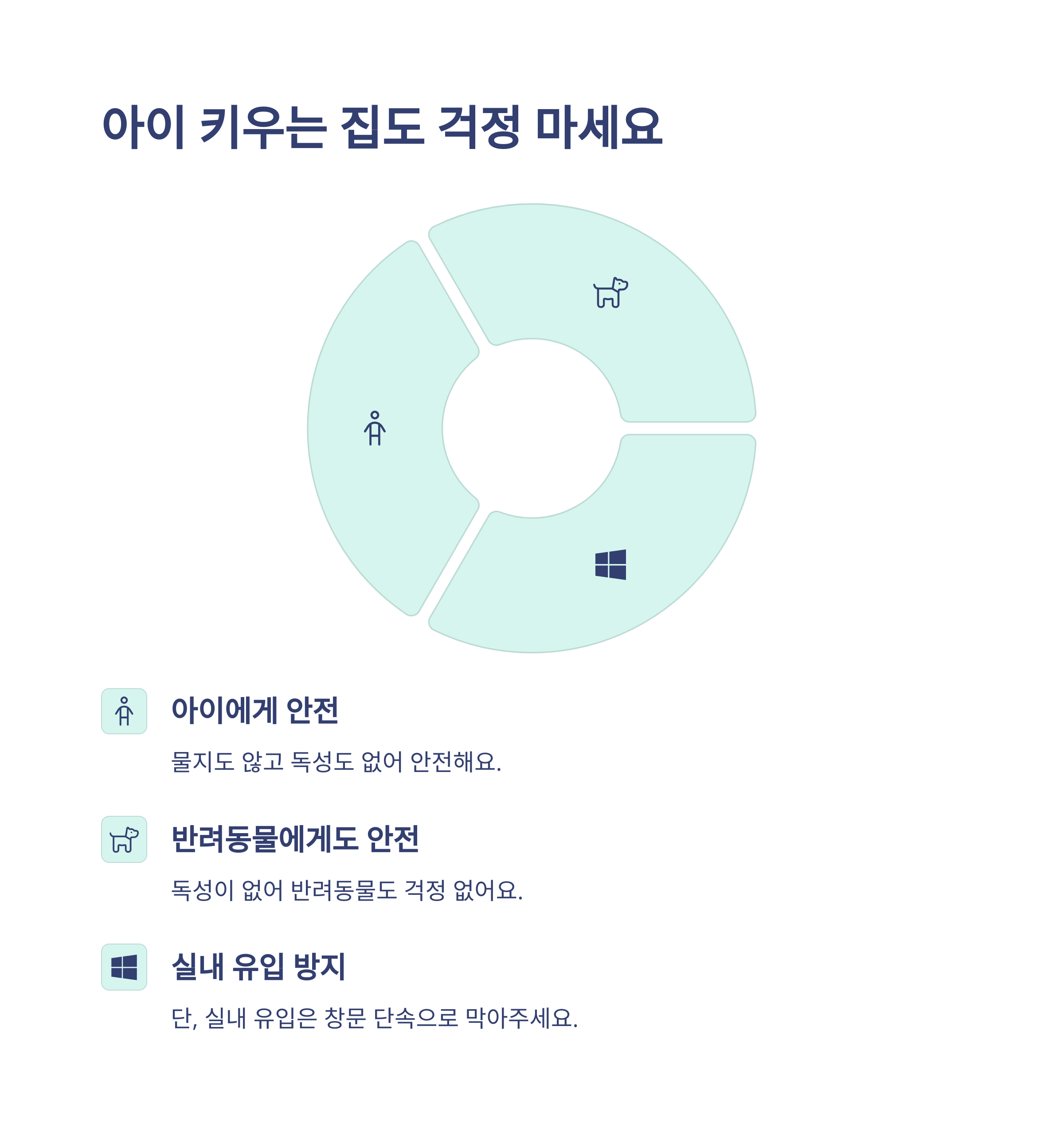 A. 일반 살충제나 모기퇴치제에는 거의 반응하지 않습니다. 환경 차단이 우선입니다.