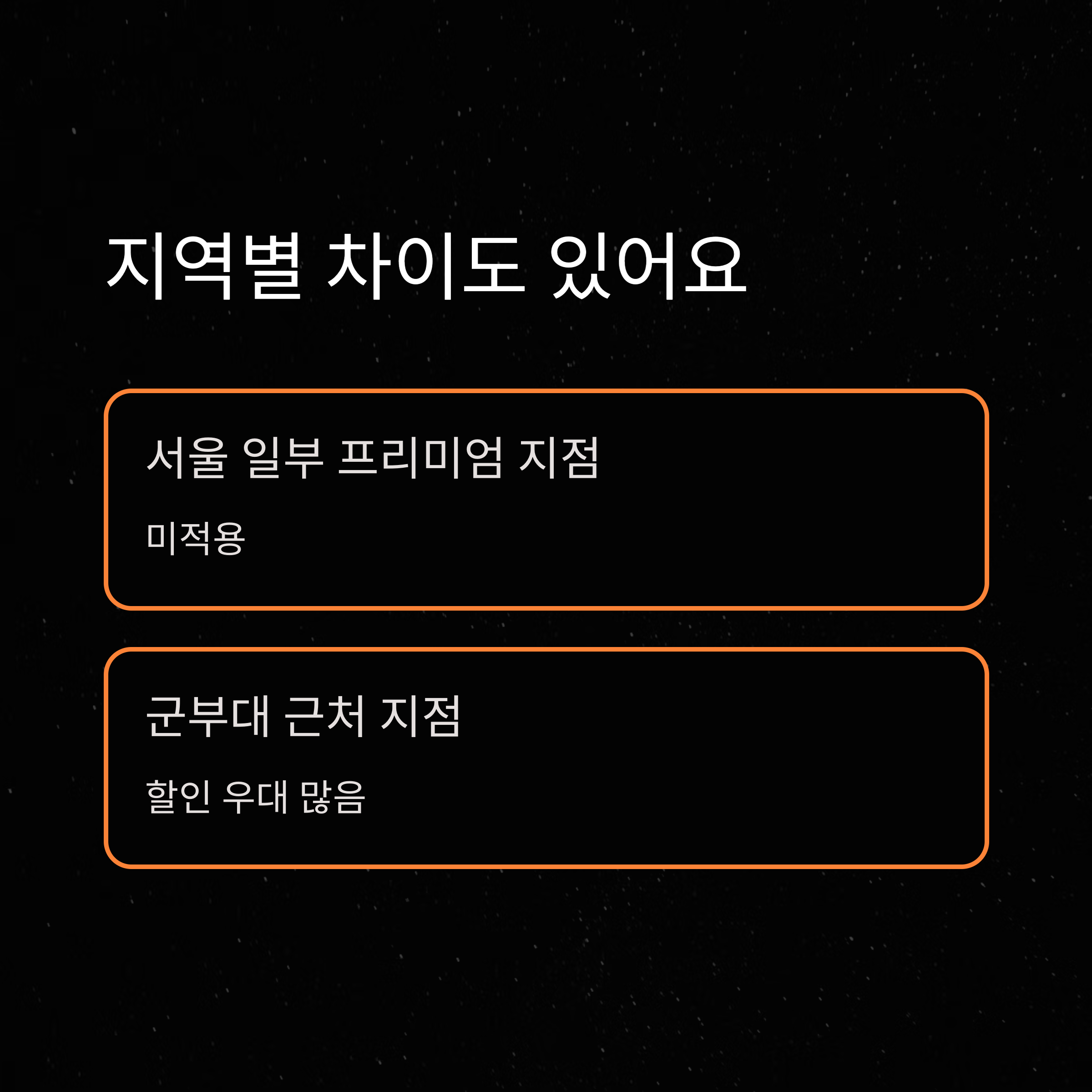 마지막으로 중요하지만 잘 알려지지 않은 부분, 지점별 할인 적용 차이입니다. 제가 강원도와 서울에서 각각 이용해봤는데, 할인 가능 여부나 할인 금액이 조금씩 달랐어요. 예를 들어, 서울 중심가의 일부 프리미엄 지점은 군인할인 자체 미적용이었고, 지방 소도시 지점은 할인 폭이 다르거나 특정 요일에만 가능했던 경우도 있었습니다. 지역 차이 팁: