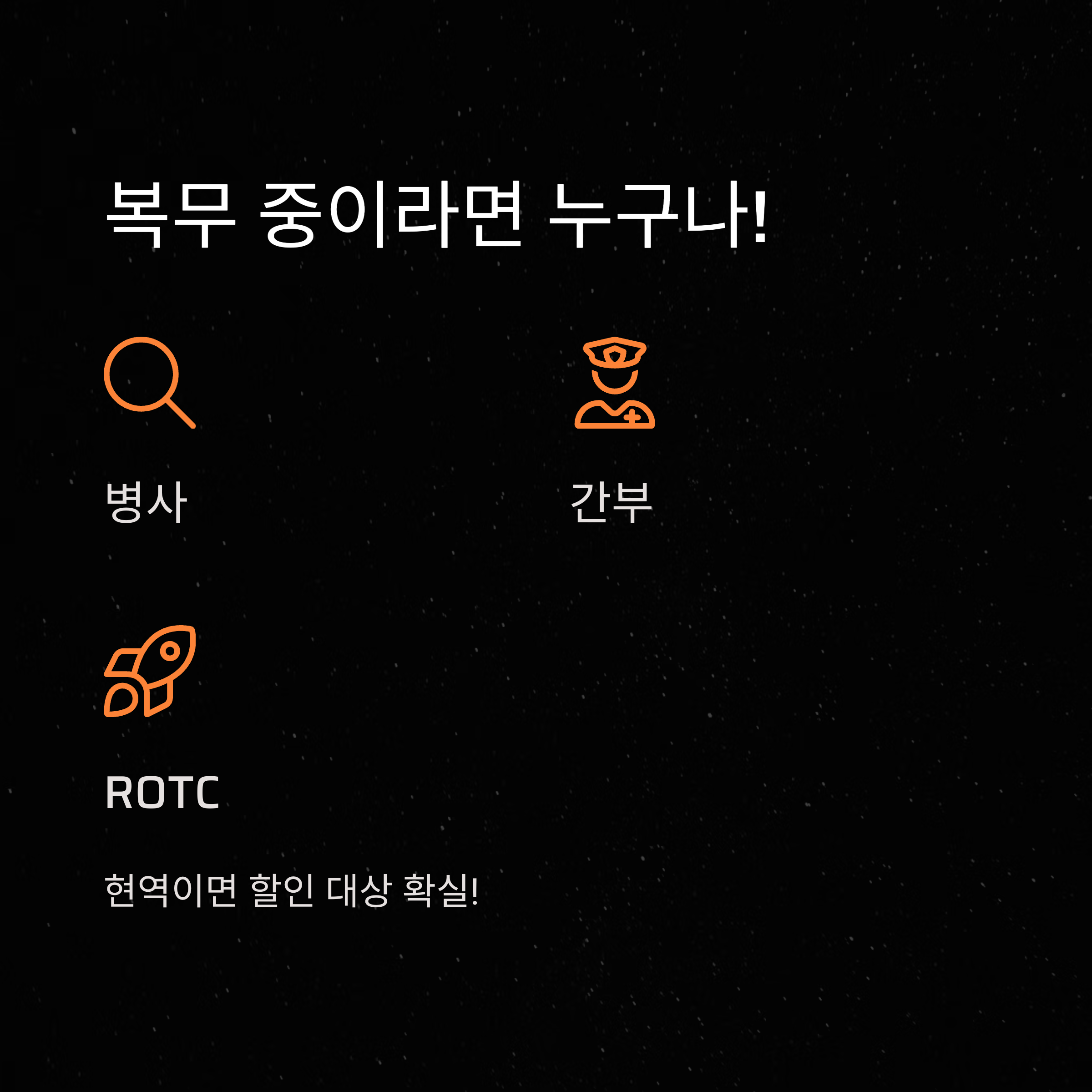 이제 군인 할인 받을 수 있는지 헷갈릴 일은 없으실 거예요.