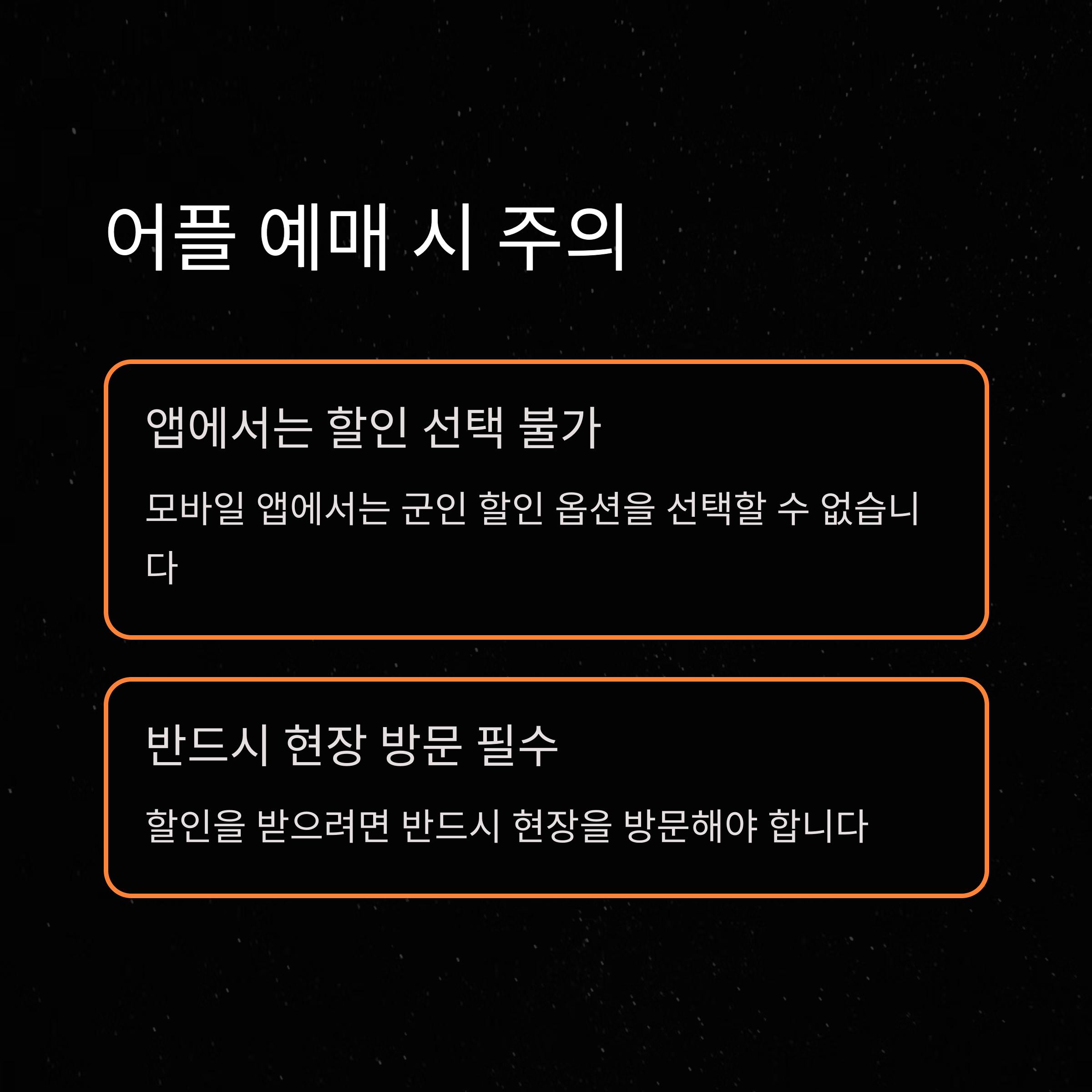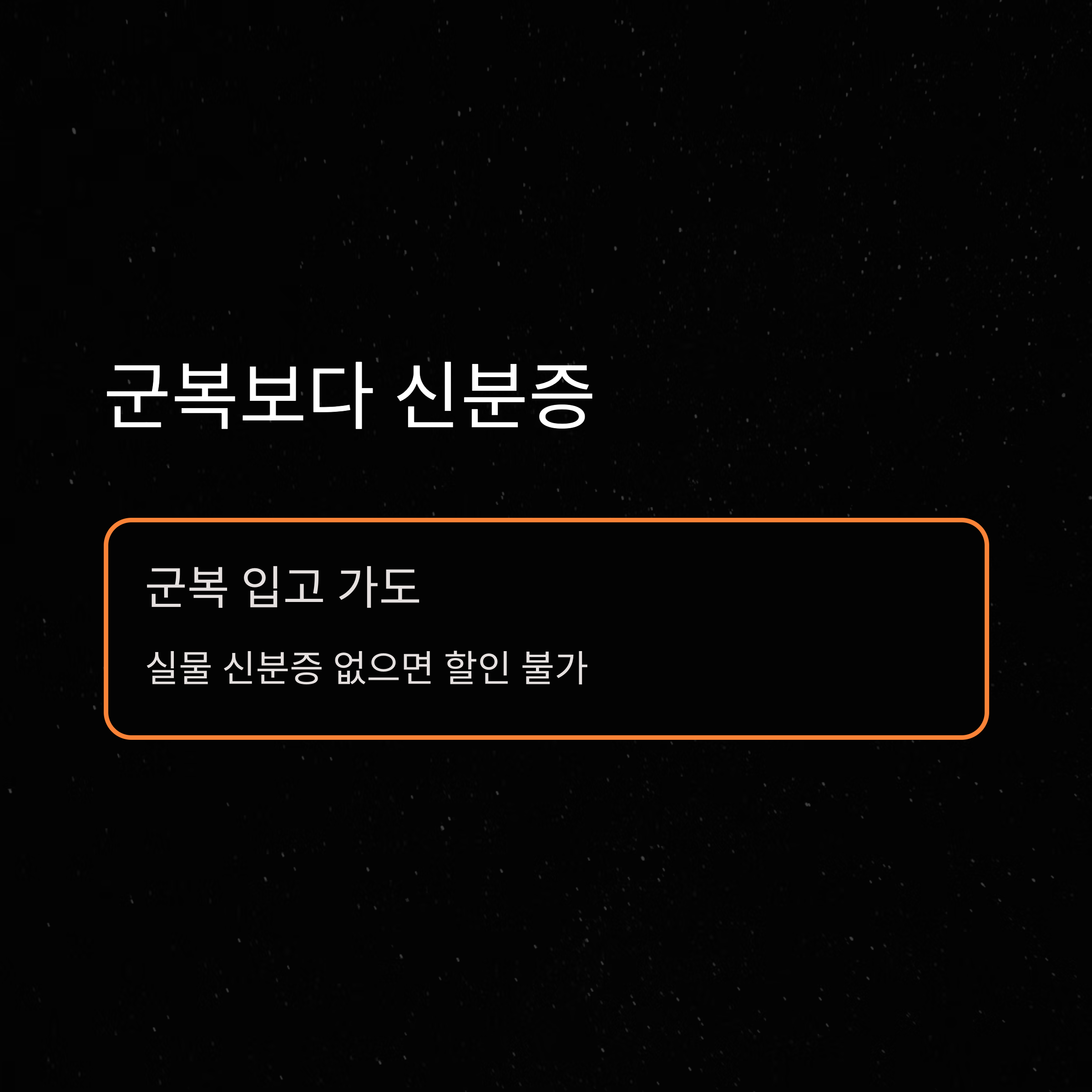 A. 군복 착용만으로는 할인 적용이 어렵고, 공식 신분증이 반드시 필요합니다.