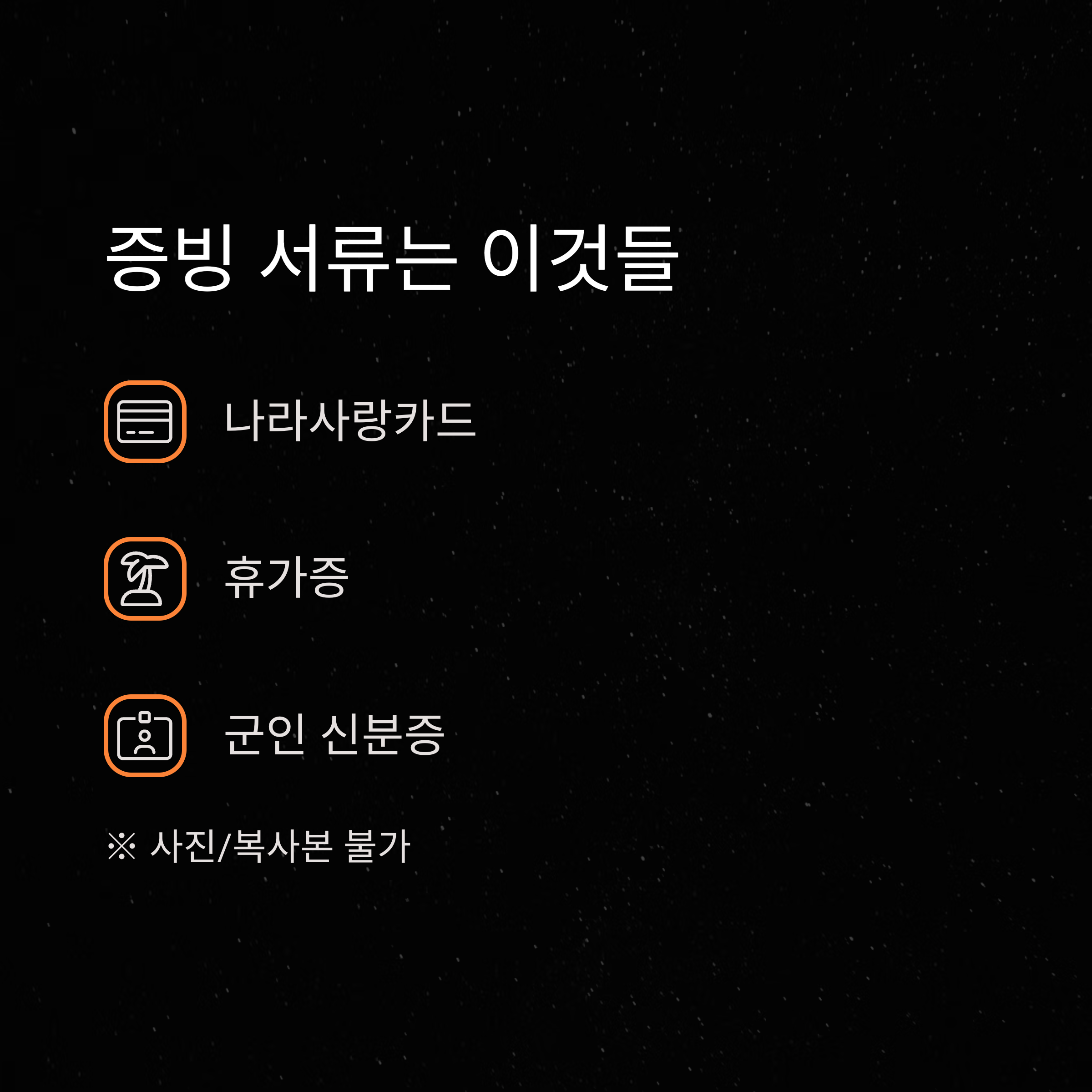 - 휴가증, 신분증, 나라사랑카드 중 하나 제시