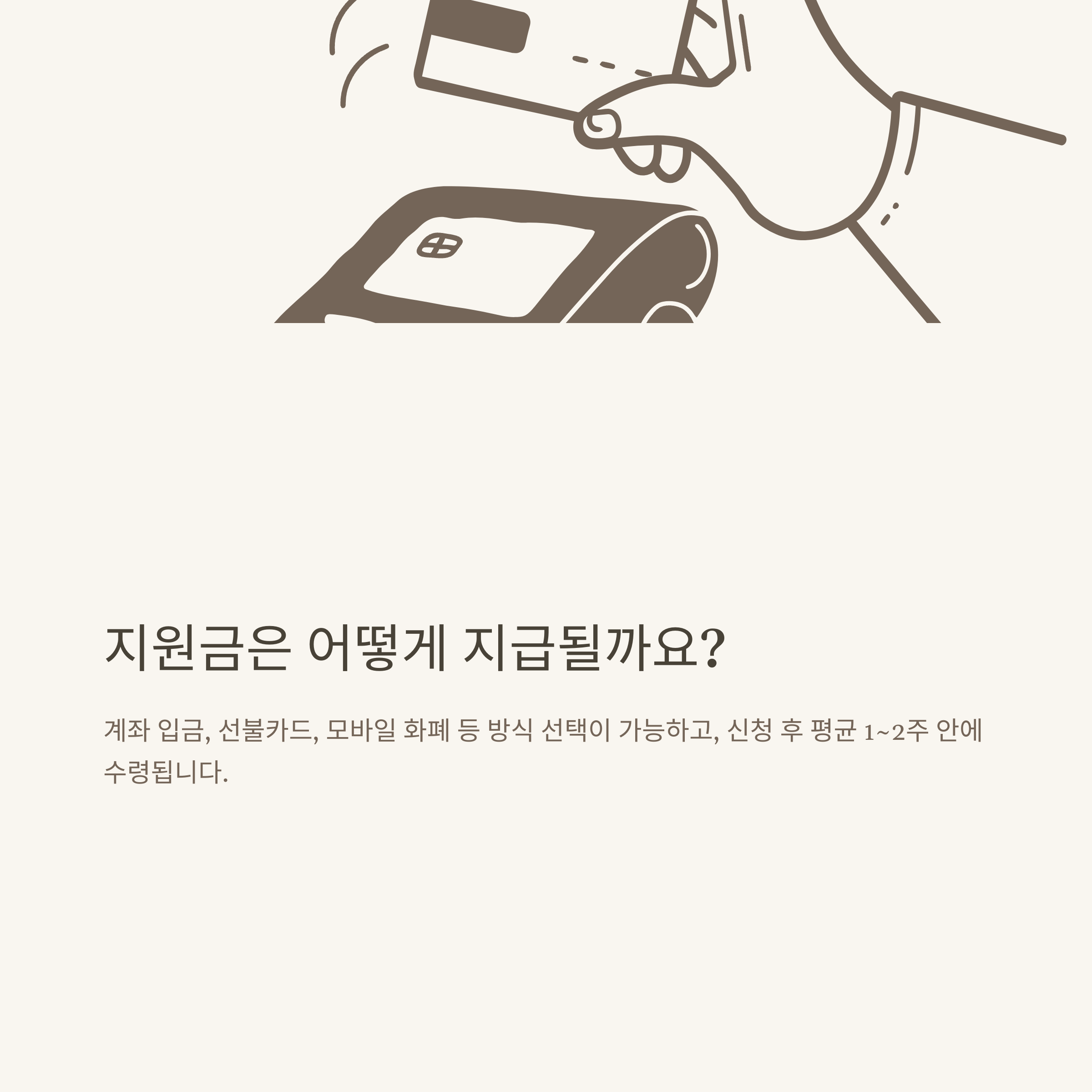 - 선불카드: 주민센터 방문 수령 후 현장 사용