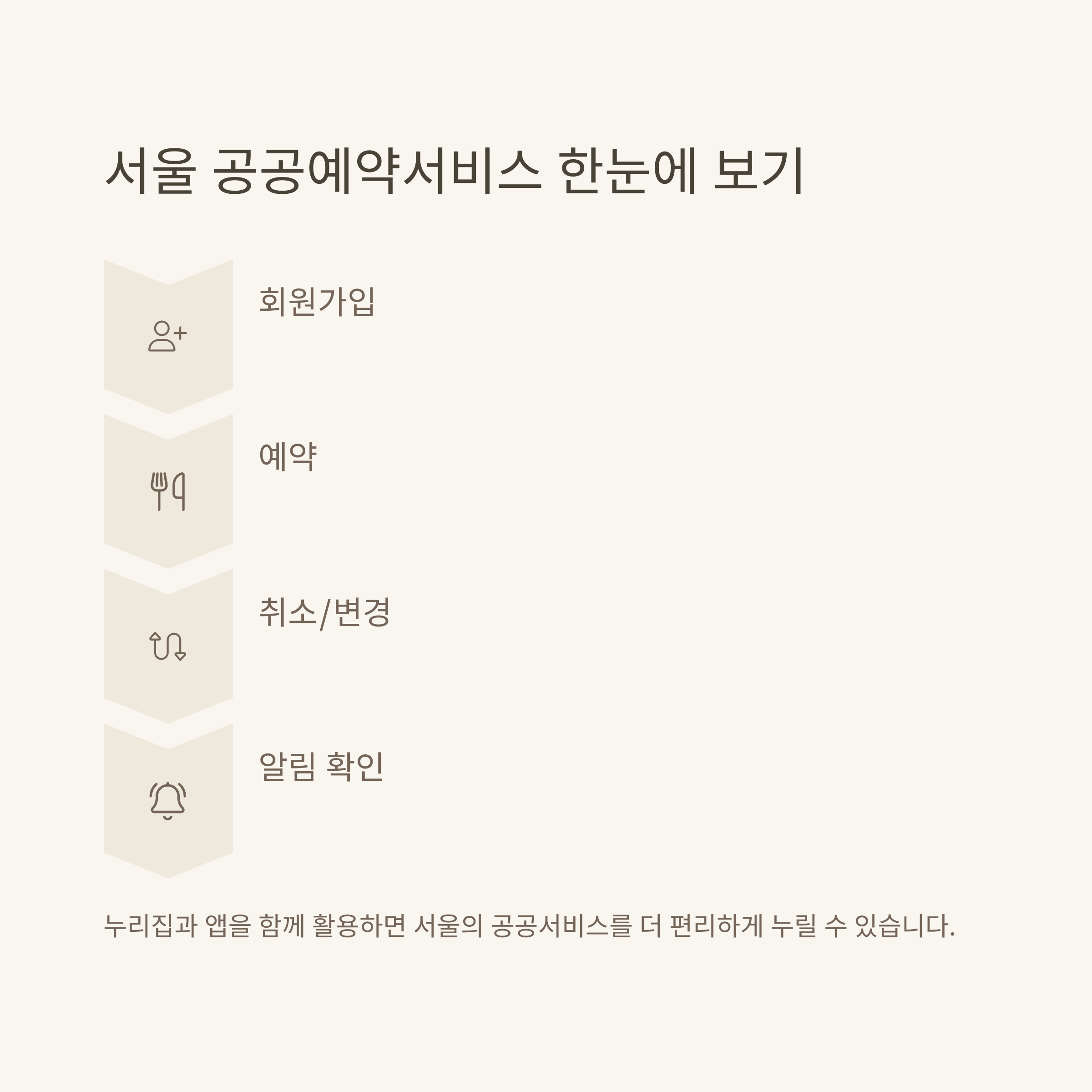 서울 공공예약서비스는 회원가입부터 예약, 취소, 대기, 알림까지 한 번에 관리할 수 있어 정말 편리합니다.
