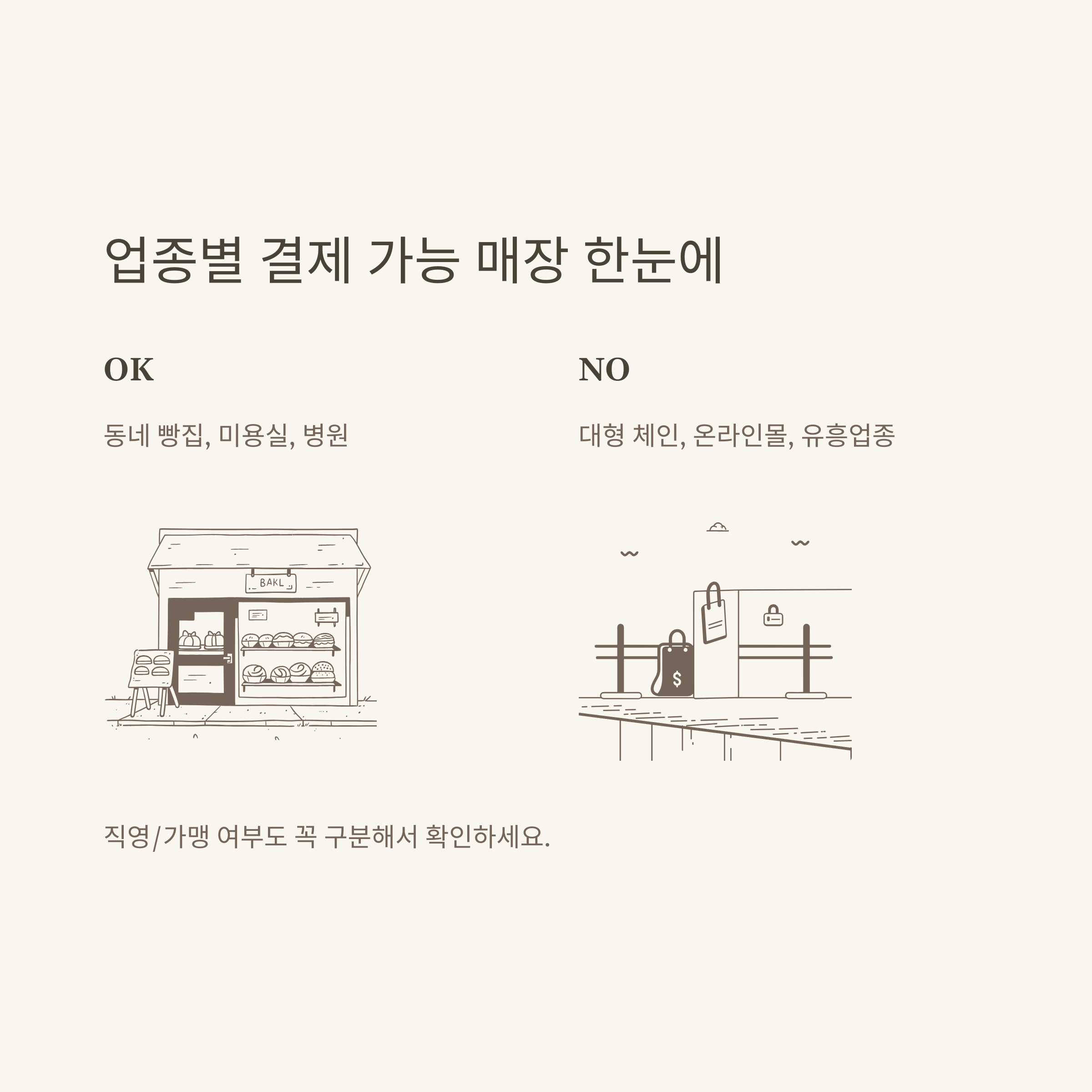 | 음식점·카페 | 동네 식당, 일반카페, 분식집 등 | 프랜차이즈 직영점, 대형 체인 |