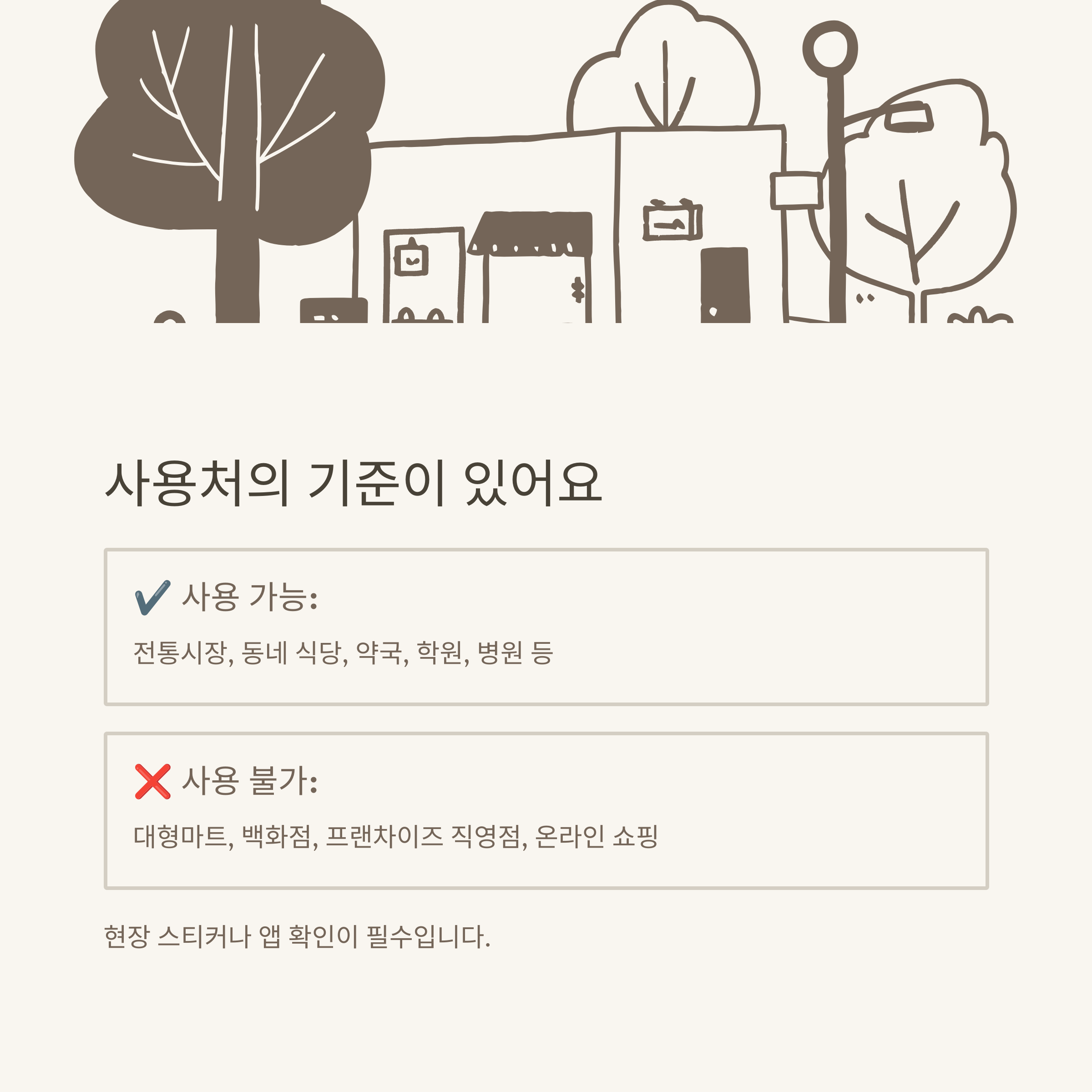 | 주요 사용처 | 전통시장, 소상공인 식당, 카페, 약국, 학원 등 |