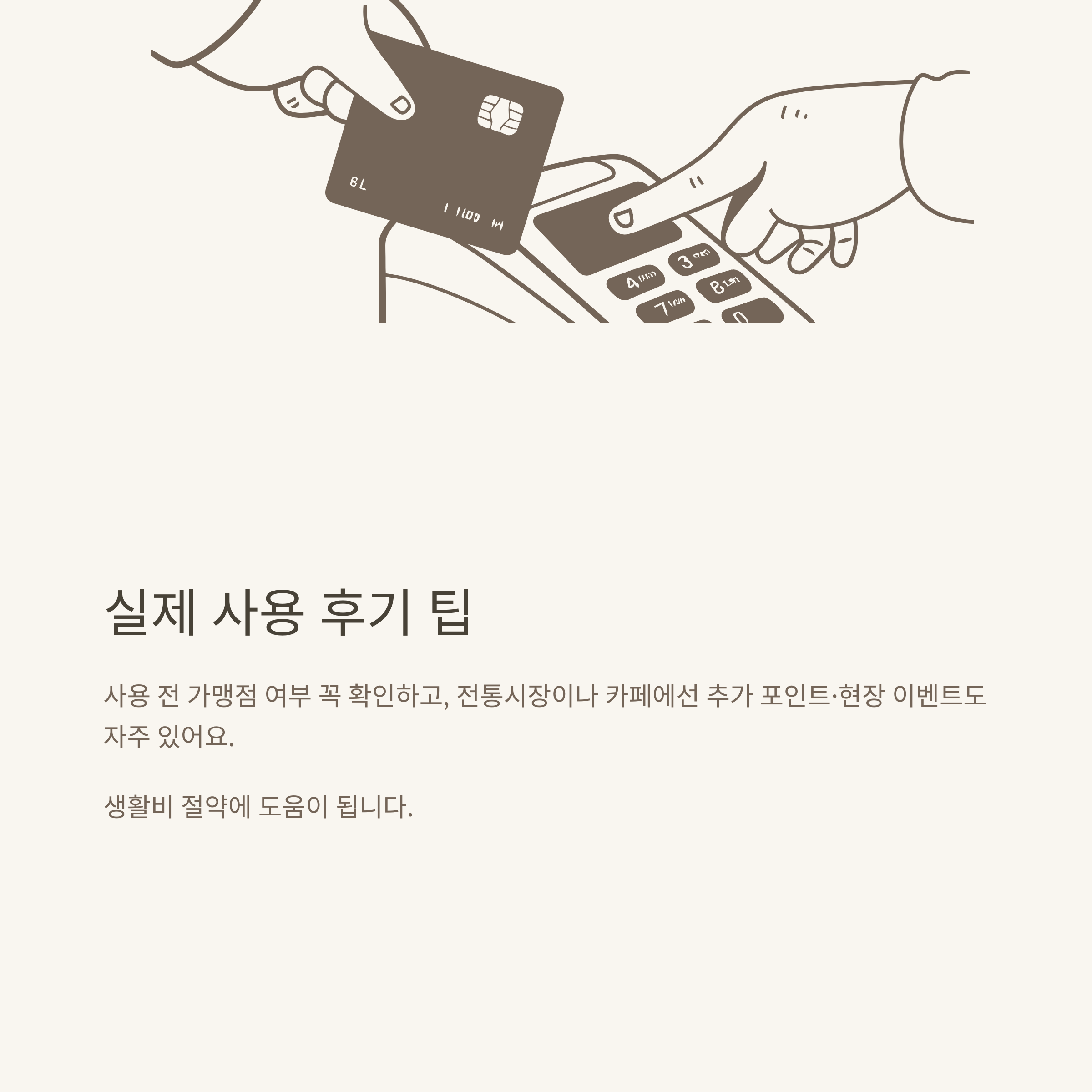- 전통시장, 동네 빵집, 소규모 카페 등에서 사용하면 추가 포인트 적립, 현장 이벤트 등도 자주 경험했습니다.
