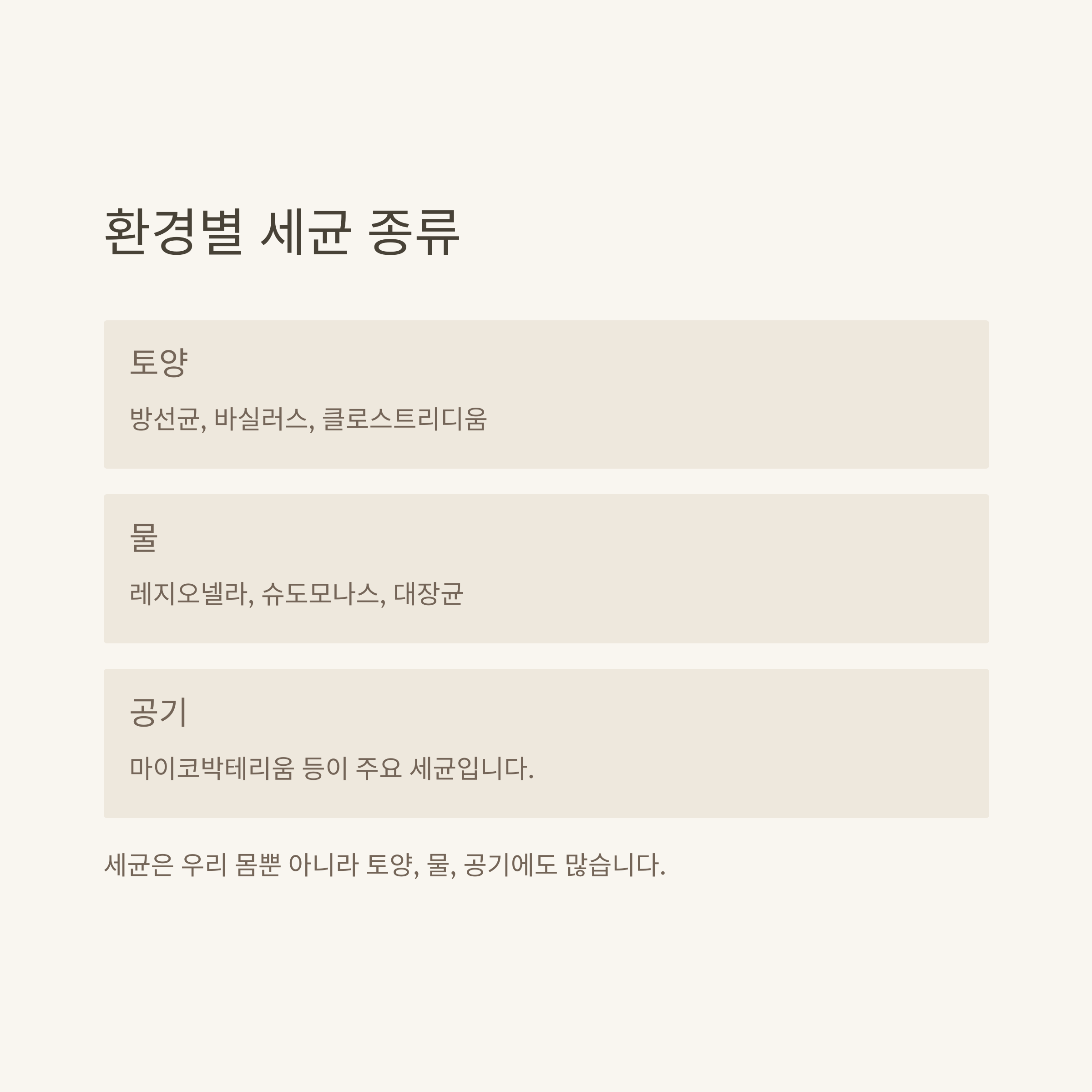 환경별 세균 종류(토양·물·공기 세균)