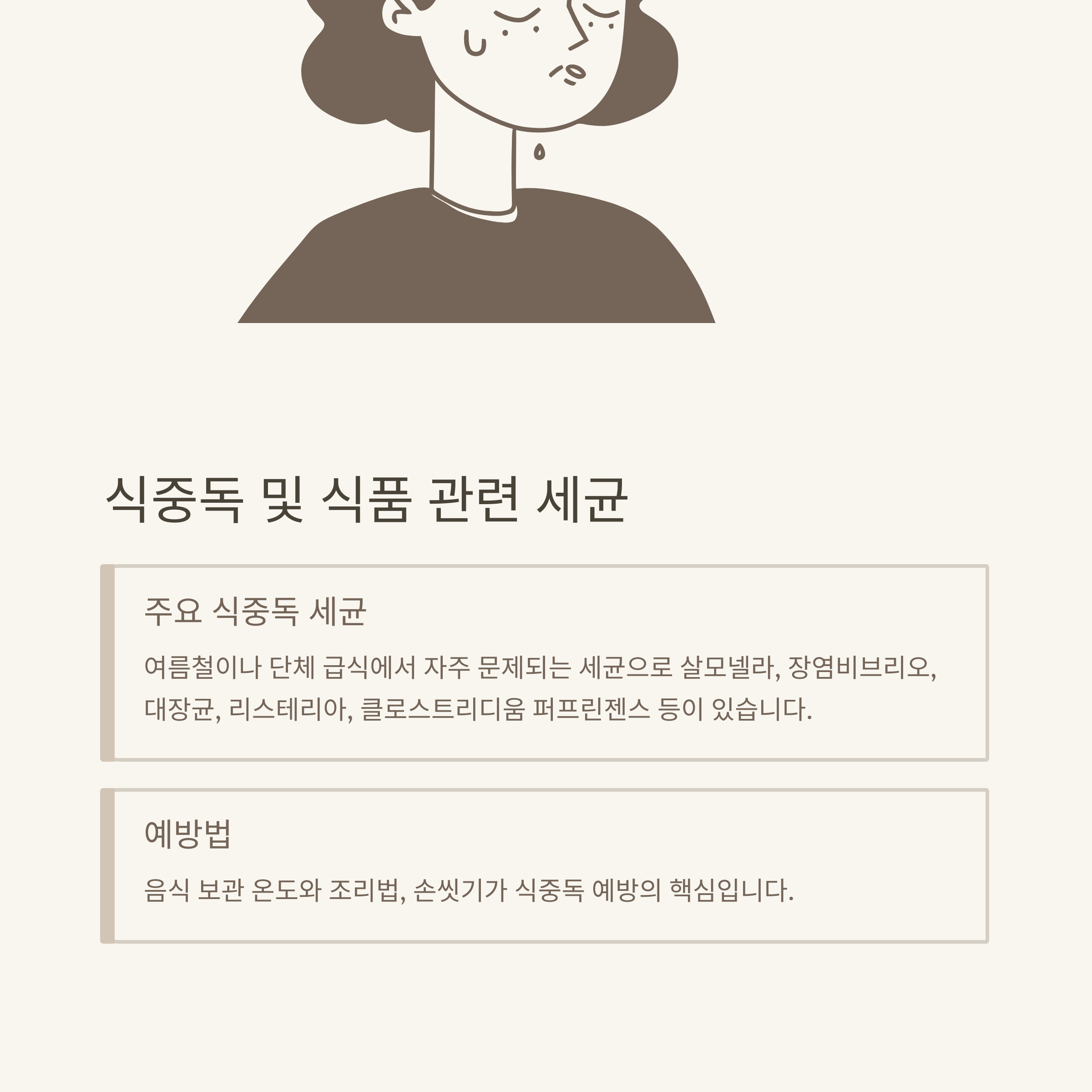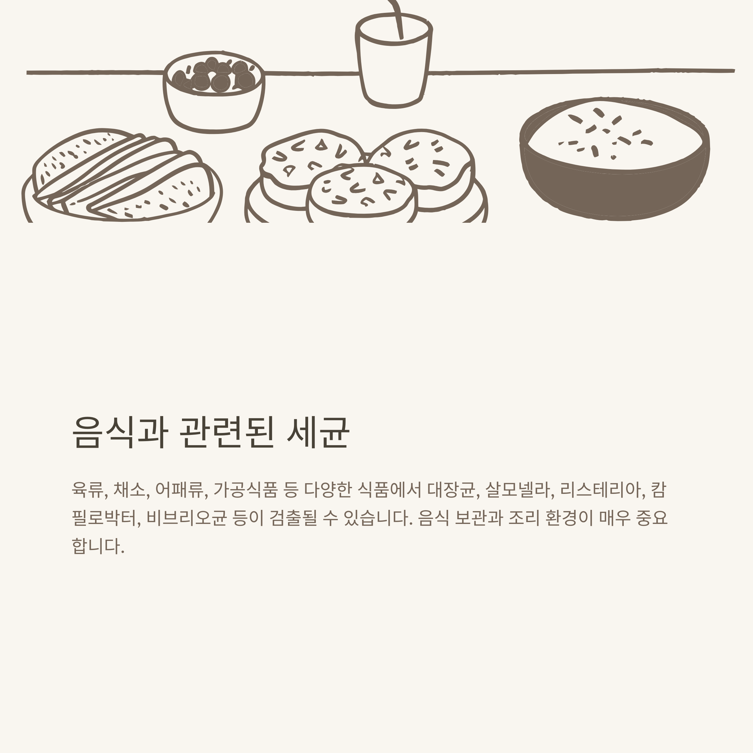 - 비브리오균(Vibrio): 어패류, 해산물 중심 여름철 식중독 원인
