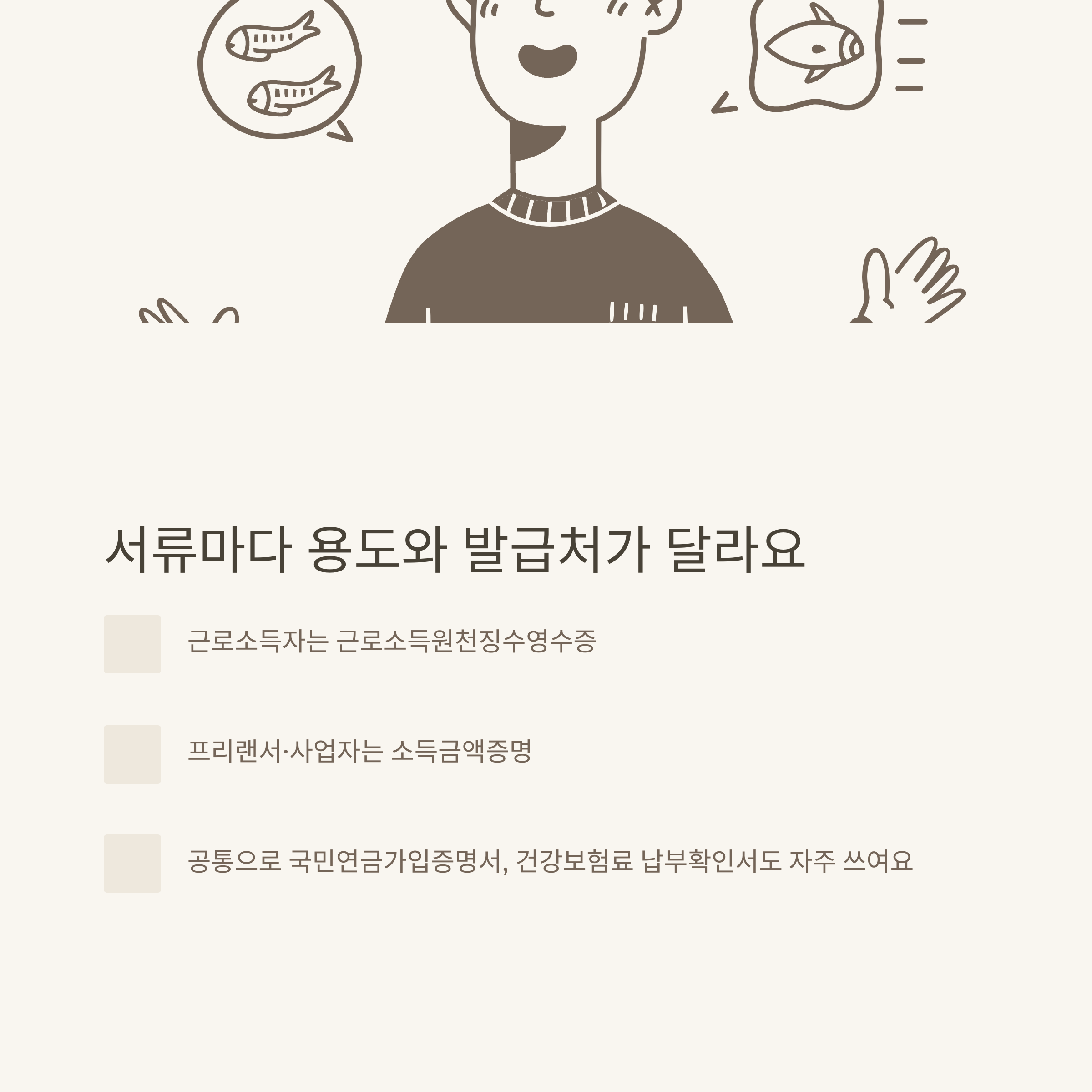 - 근로자, 사업자, 프리랜서 모두 상황별 서류 상이