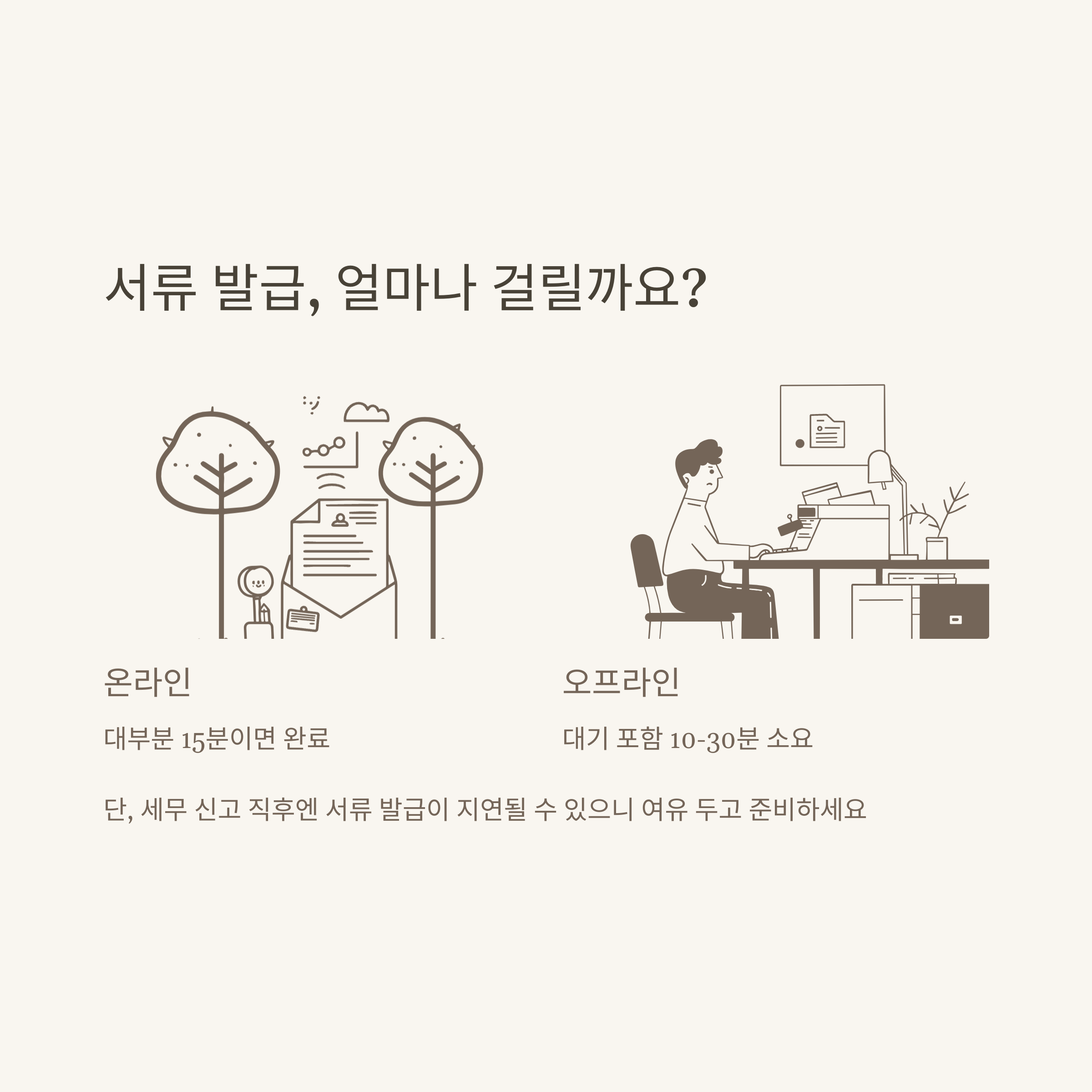 - 세무서, 주민센터 방문 : 대기 포함 10~30분 소요