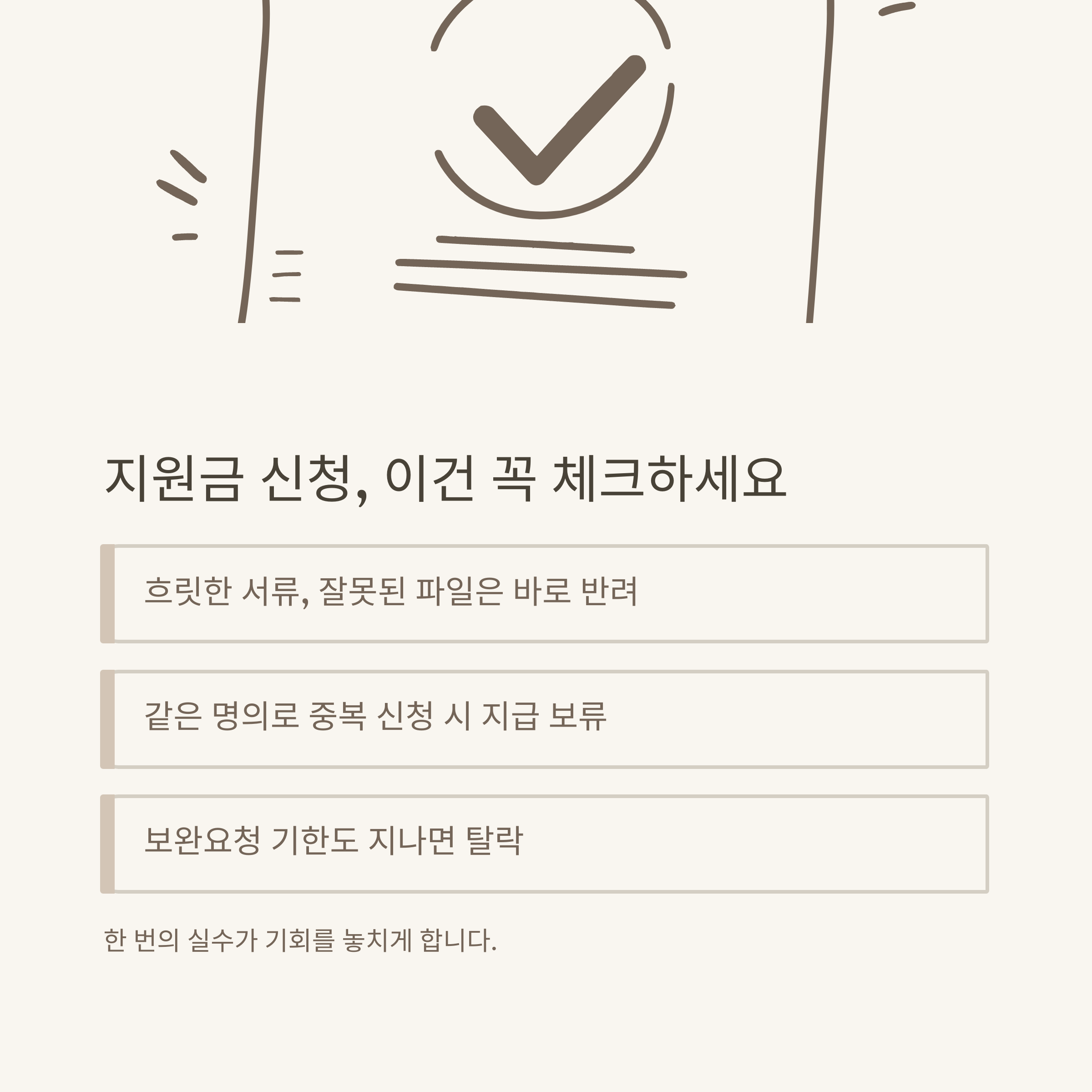 - 서류 보완 기간: 신청 후 2~3일 이내 보완 요청 가능