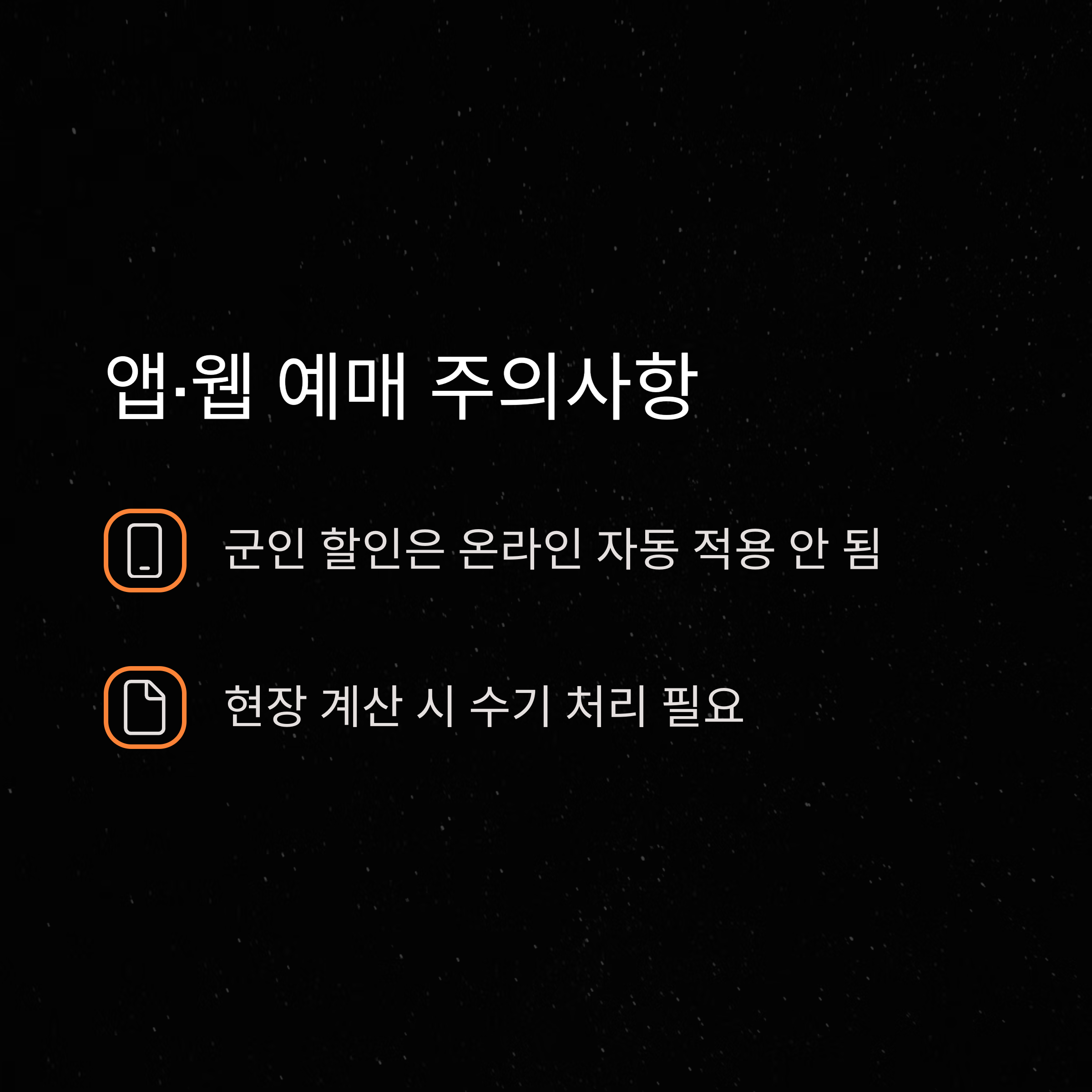 | 할인 대상 | 현역 병사, 간부, ROTC 후보생, 일부 예비역 |