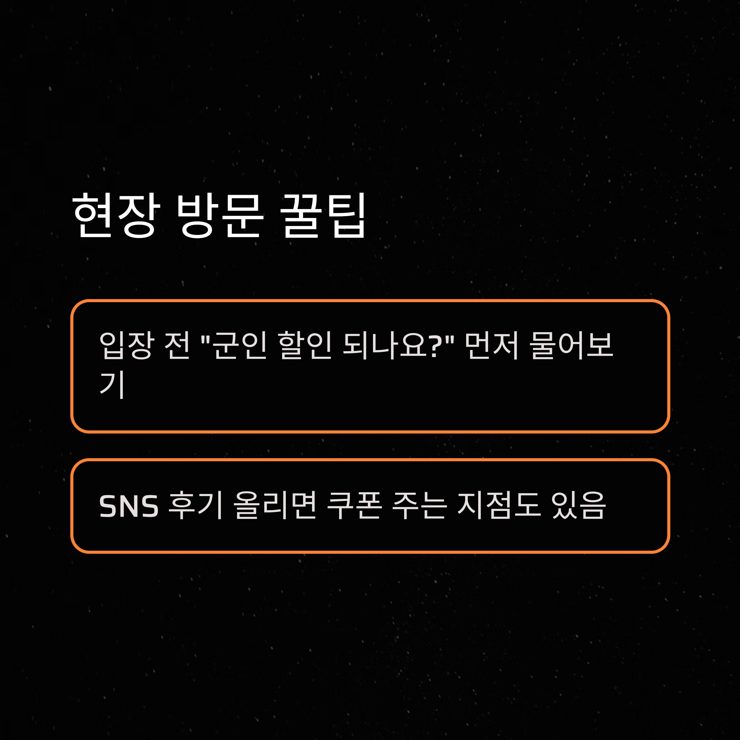 - 입장 전 “군인 할인 되나요?” 먼저 문의
