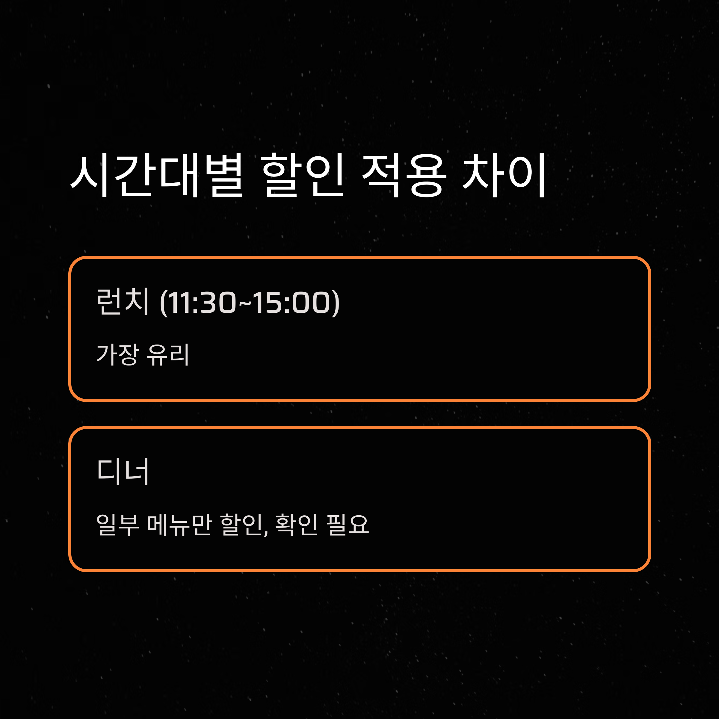 | 할인율 | 최대 15%, 런치 시간대 중복 가능 |