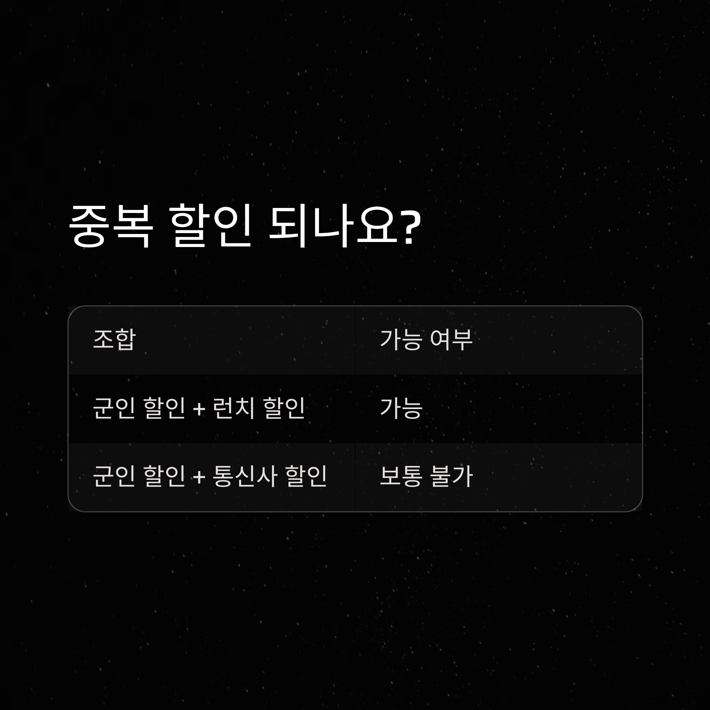 Q6. 통신사 할인과 군인 할인 중복 가능한가요?