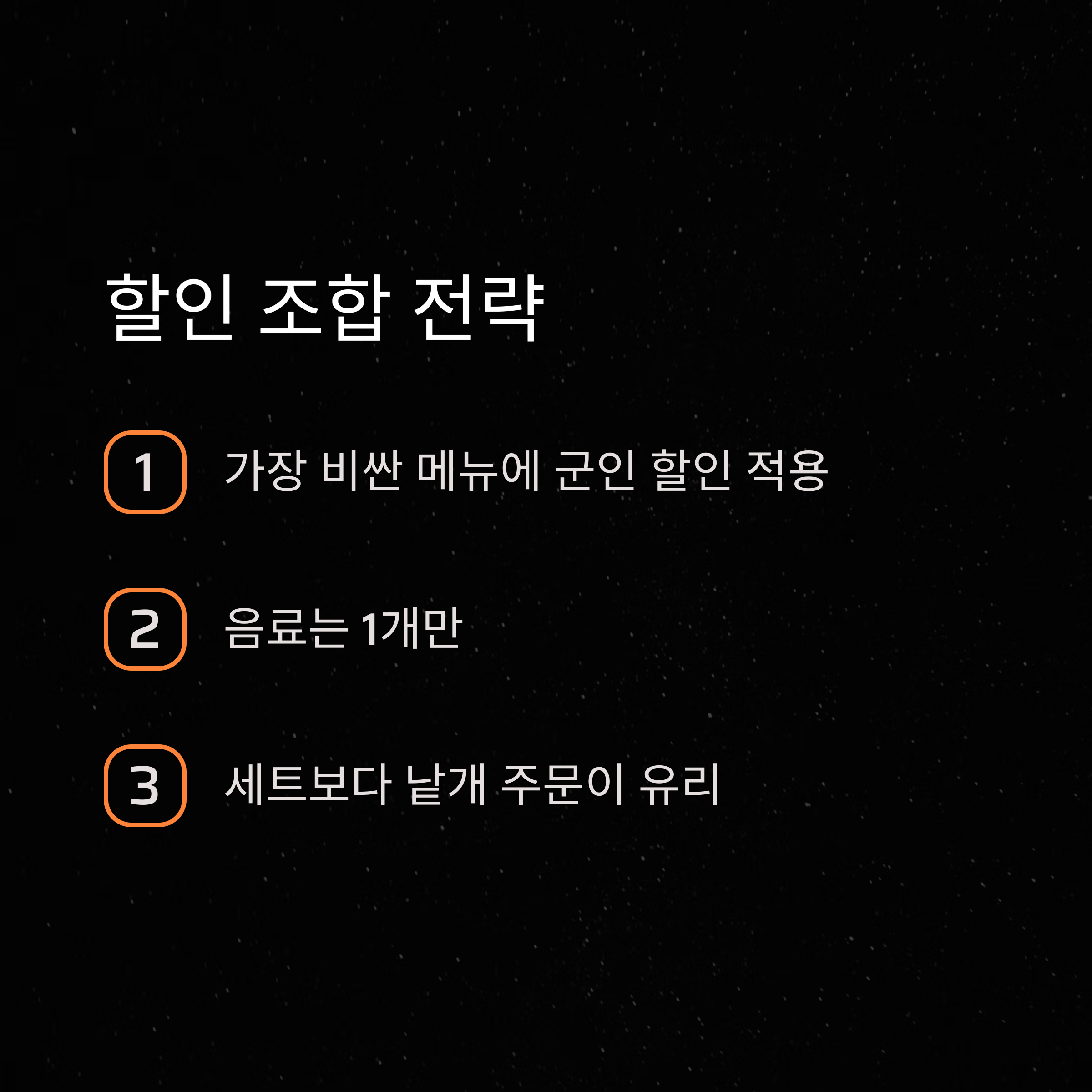 팁: 런치 시간대 방문이 가장 할인폭이 크고, 병사분들은 오전 외출·외박 시간을 적극 활용하시는 게 좋습니다.