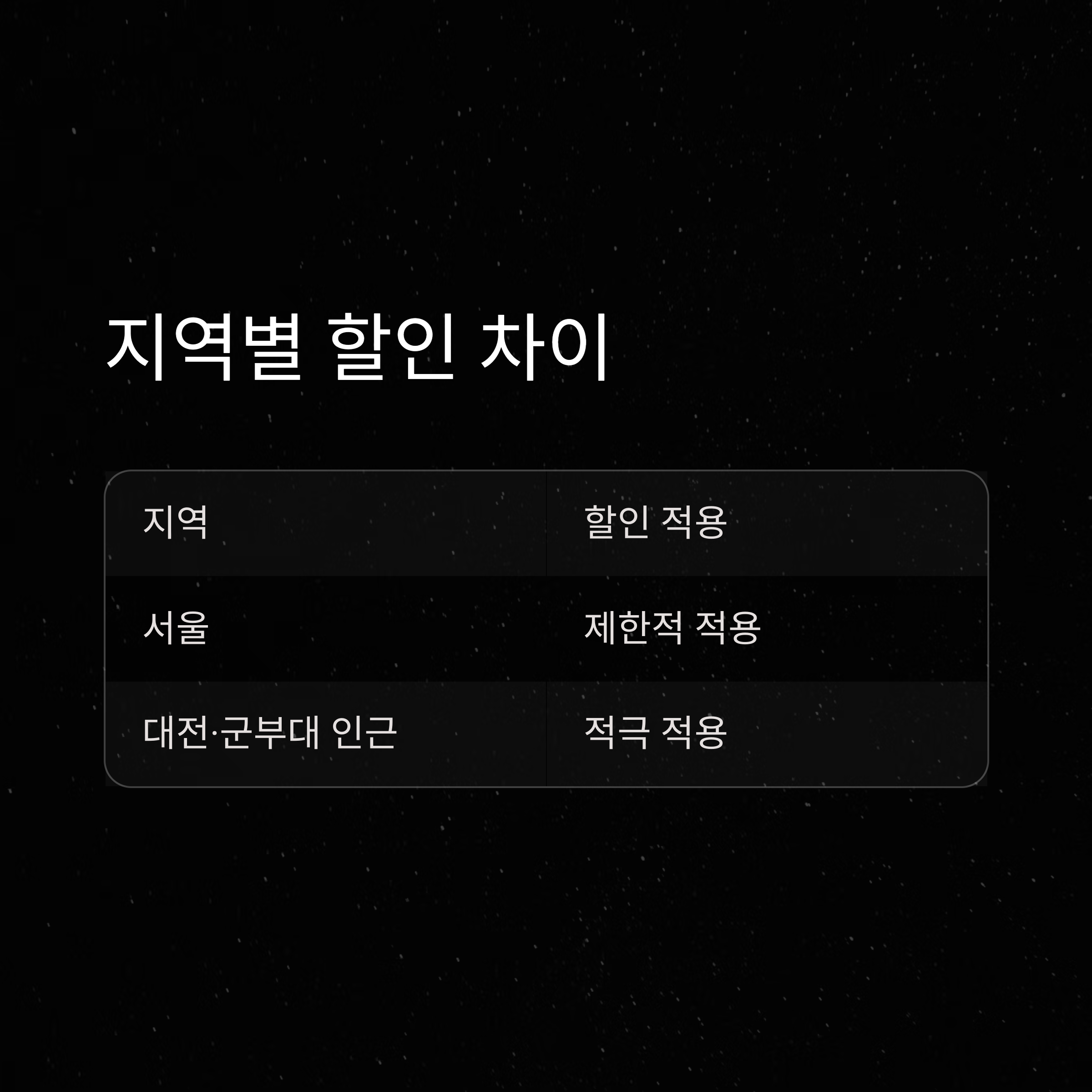 - 부산 센텀시티점: 간부만 할인 적용