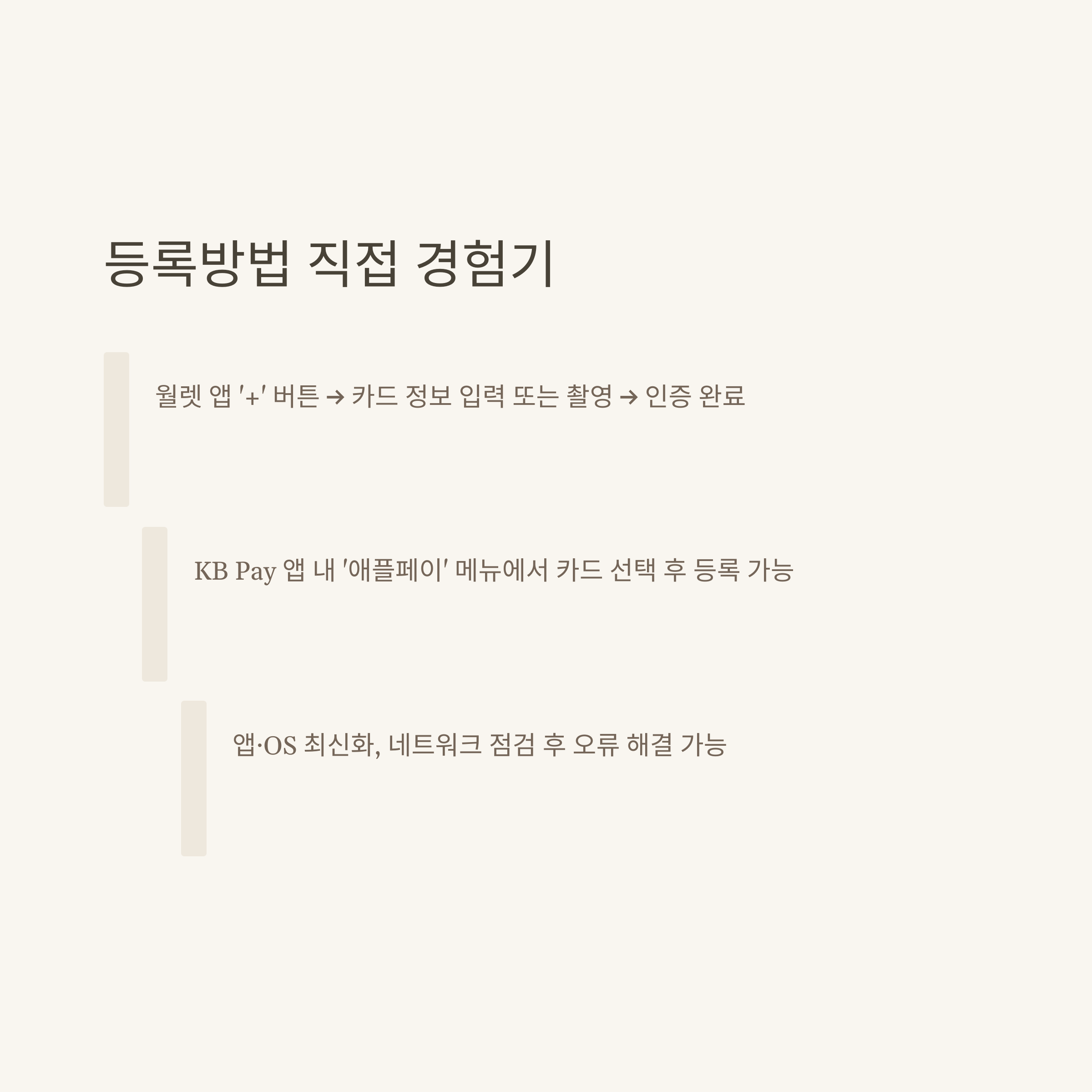 | 등록 방법 | 월렛 앱, KB Pay 앱 | 본인 명의 필수 |